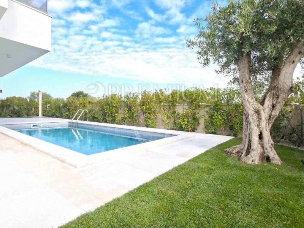 U vanjskom dijelu nalazi se privatni bazen s elektrolizom i dizalicom topline, okružen pažljivo uređenim vrtom u mediteranskom stilu. Kameni zidovi, fasadni kameni detalji , te hortikultura s autohtonim biljem, uključujući stoljetne masline stare 300 godina.