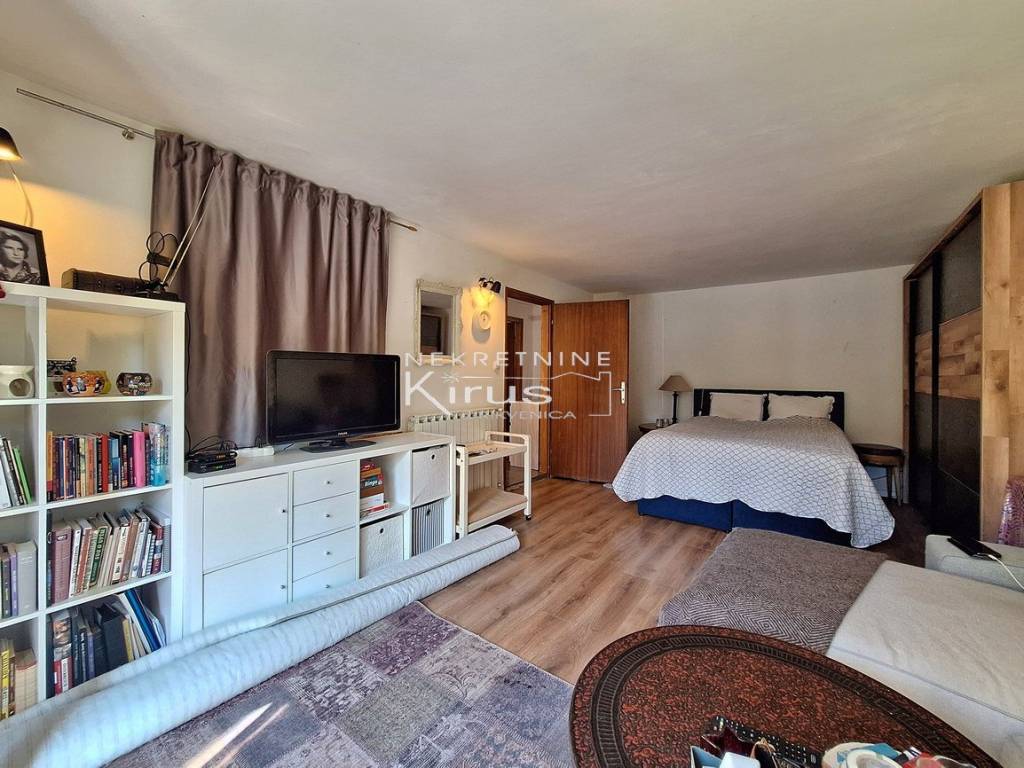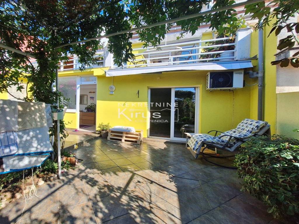 Nudimo na prodaju dvije etaže, dva stana 2S+DB, na vrlo mirnoj lokaciji. U suterenu je stan površine 80m2, sa lijepim dvorištem i vrtom. Na prvoj etaži, prizemlju, je stan sa dvije spavaće sobe i prostranom terasom površine 100m2. Sa terase pruža pogled na more i obilje zelenila. Kuća je u vrlo dobrom stanju, odmah useljiva. Idealno za dvije obitelji. Opcija prodaje svake etaže posebno. Pokrenut postupak etažiranja. U račun može stan na mirnom mjestu, Gorski kotar ili Riječki prsten.