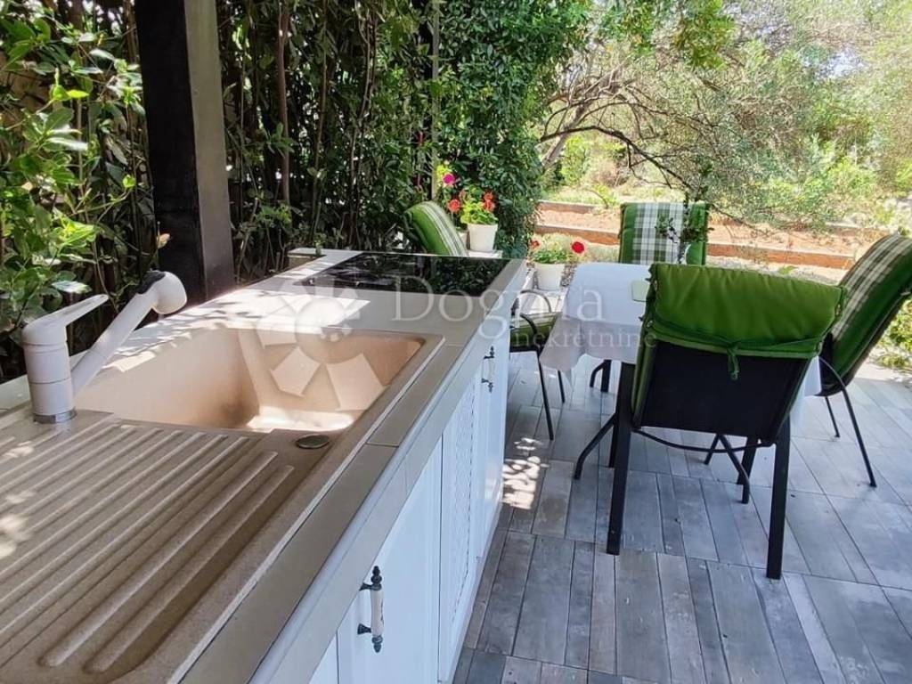Prizemni dvosoban stan u manjoj zgradi s ukupno pet stanova, mirna ulica u Lukoranu na otoku Ugljanu. Useljiv odmah, moderan i promišljeno uređen namještajem po mjeri, s uređajima višeg ranga. Stambeni dio ima 47,23 m2, a privatni ekstenzije čine natkriveni vanjski dio s vrtnom sjenicom od 34 m2, uređeni vrt 33,47 m2 i mali povrtnjak 19 m2. U paketu je i velika garaža od 26,79 m2 te parkirno mjesto ispred garaže. Ukupna korisna vrijednost stana i pripadajućih površina iznosi oko 89 m2. Raspored je funkcionalan: dvije prostrane spavaće sobe s TV-om od kojih se jedna, po potrebi, može koristiti kao dnevni boravak, kuhinja, kupaonica i odvojeni WC. Fasada je termoizolirana, ugrađena je klima, provedena je priprema za podno grijanje. Okruženje je zeleno i privatno, s maslinama, smokvama i mandarinama. More, plaže, trgovina, kafići i restoran su na oko 200 do 250 metara. Trajektna veza do Zadra traje oko 20 minuta, što čini ovu lokaciju idealnom za miran život ili šik vikend-bazu bez kompromisa. Ovakav prizemni stan s vlastitim dvorištem i garažom rijetko dolazi na tržište; prvi obilazak ima prednost. ID KOD AGENCIJE: DA100066101 Lovre Čavara Agent s licencom Mob: 091/618-1711 Tel: 023/551-400 E-mail: lovre.cavara@dogma-nekretnine.com www.dogma-nekretnine.com