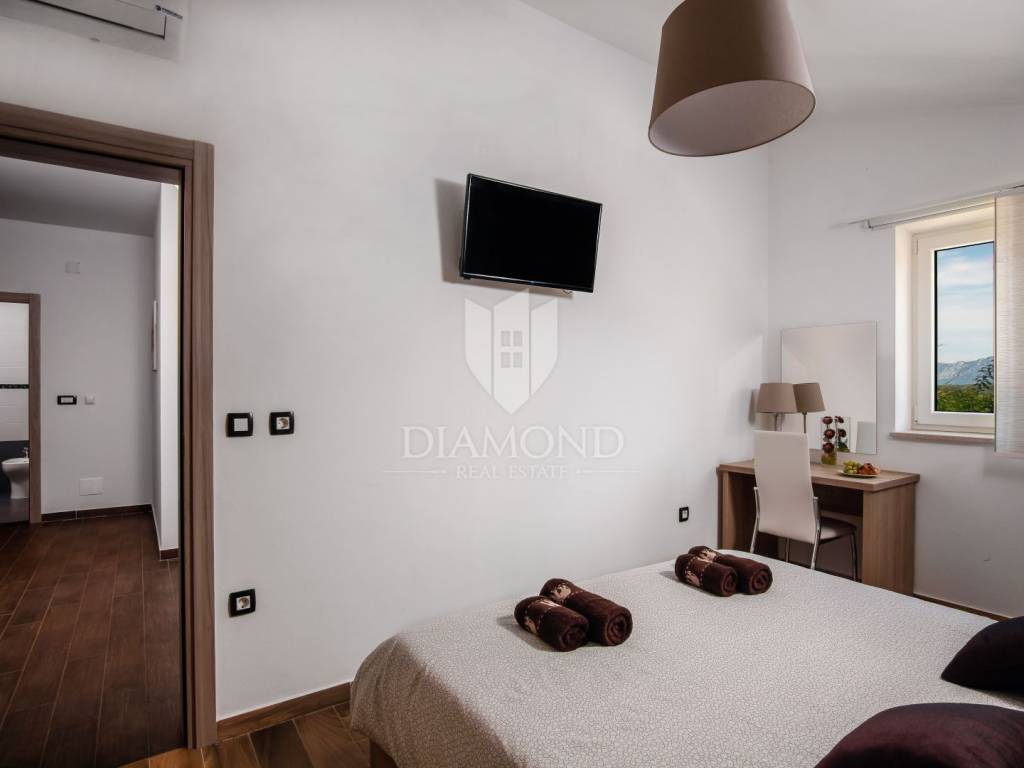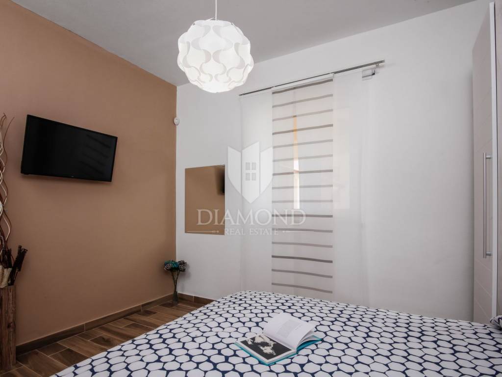 Kuća se sastoji od prizemlja i kata te obuhvaća četiri spavaće sobe, dvije moderno uređene kupaonice, opremljenu kuhinju, blagovaonicu i dnevni boravak s izlazom na natkrivenu terasu.