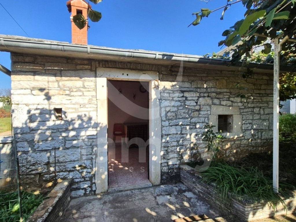 Nekretnina se nalazi u mirnijem dijelu svega nekoliko minuta udaljeno od naseljenijeg dijela Žminja. Nekretnina se nalazi uz prometnicu a dovoljno je udaljeno od buke i pruža se lijepi pogled na zelenilo. Ispred prostrane kuće od svega 200 m2 i pomoćnih objekata sa kojim sveukupna površina od 357 m2 zaista ovu nekretninu čini posebnom. Ulaskom na česticu nalazi se zasebni samostojeći objekt koji služi kao prostor za kuhanje i druženje sa kaminom. Objekt je funkcijonalan i lijepog je izgleda, obloženo u kamenu kao autohtona kućica. Glavni prostrani objekt ispred posjeduje veliku nadstrešnicu gdje se može boraviti i opuštati bez obzira na vremenske prilike. Ulaskom u kuću u prizemlju imamo prostor gdje su nam ormari i prostrana kuhinja koja služi i kao blagavaonica i soba koja je malo odvojena i služi kao dnevni boravak. U prizemlju je postavljen klima uređaj kao i peć na drva koja se nalazi u kuhinji. Kupaonica je također u prizemlju, dovoljno je prostrana i posjeduje kadu i tuš kabinu. Podovi na prvom katu su djelomično drveni a djelomično obloženi pločicama. Odlaskom na gornju etažu drveno stepenište nas vodi u prostran dio predsoblja. Na gornjem dijelu imamo prvu prostranu spavaću sobu gdje su podovi obloženi laminatom, a soba je izuzetno prostrana i idealne orijentacije sa pogledom na zelenilo. Druge dvije spavaće sobe su također prostrane i komforne za boravak. Podovi su obloženi daskama a pogled sa prozora je također na zelenilo. Duž istog hodnika koji nas vodi prema spavaćoj sobi i imamo i direktan izlaz na terasu gdje nam se nalazi bunar i pogled na ostatak dijela čestice na stražnjem dijelu kuće. Iz istog hodnika imamo stepenište koje nas vodi na potkrovlje koje ima nove betonirane podloge i krov napravljen na novo prije nekoliko godina. U spomenutom dijelu nekretnine nam se nalaze dva veća prostora i jedan manji. Svaki prostor zasebno posjeduje nekoliko manjih dnevnih otvora. Ulazna vrata su PVC obložena kamenom po rubovima. U ostatku nekretnine je postavljena drvena stolarija i škure. Veći dio kuće ima obnovljenu fasadu 2017. godine, te iste godine kad je napravljen i krov. Unutar kuće se nalazi veoma prostrano spremište sa zasebnim ulazom. Posjedujemo još jedan prostor koji je uređen sa postavljenim pločicama. U sklopu okućnice je posađeno nekoliko voćaka. Svakako je bitna još jedna upisana garaža od 88 m2 koja je prostrana sa 3 zasebna ulaza i prostorije sa više funkcijonalnih prostorija različitih namjena su benefit spomenute nekretnine.