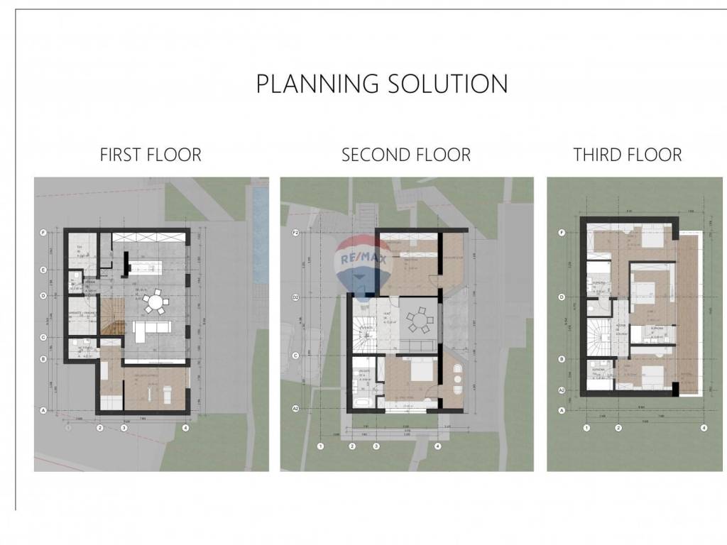 Vila je koncipirana kao jedan troetažan 4S+DB stan povezan unutarnjim stubištem.