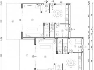 U prizemlju se nalazi ulazni prostor, kupaonica, spremište, te prostran dnevni boravak s kuhinjom i blagovaonicom u open space konceptu. Iz dnevnog prostora izlazi se na veliku natkrivenu terasu i okućnicu s bazenom. Na katu su smještene tri spavaće sobe i dvije kupaonice, a jedna od soba ima izlaz na terasu.