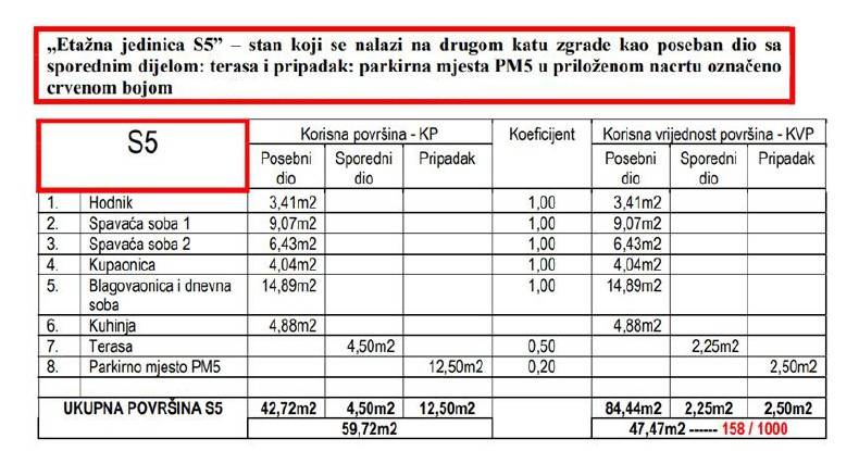 Zgrada ne posjeduje lift, a svaki stan ima pripadajući parking.
