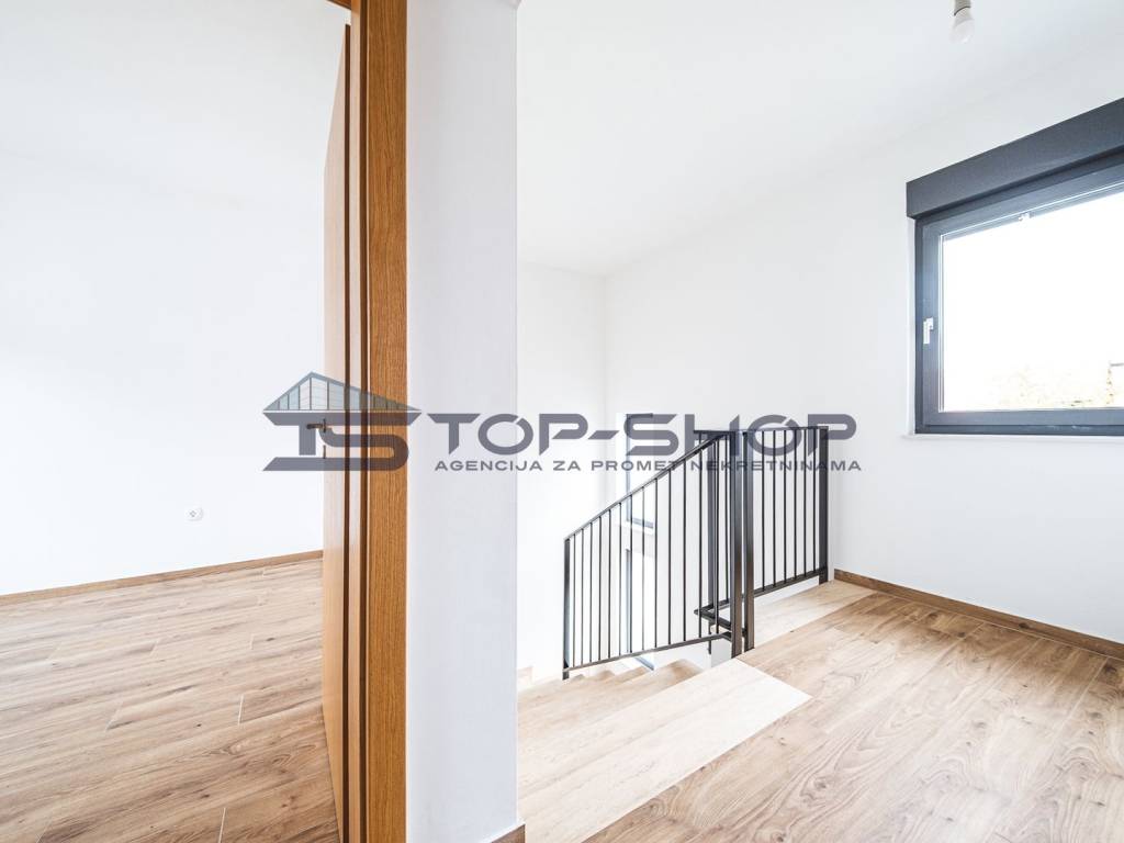 Ova nekretnina ističe se funkcionalnim rasporedom koji uključuje tri spavaće sobe, dnevni boravak s kuhinjom i blagovaonicom, kupaonicu s WC-om, dodatni odvojeni WC, hodnik te stubište. Posebna prednost su dva pripadajuća vrta (61,93 m2 i 32,61 m2), terasa i uređena okućnica, što omogućuje uživanje u vanjskom prostoru tijekom cijele godine. Kuća je orijentiran na jug i sjever, čime je osigurana obilna prirodna svjetlost.