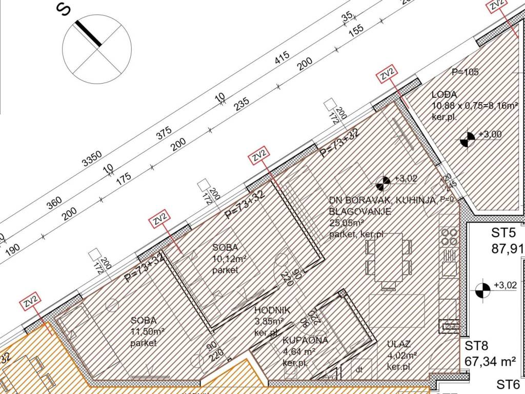 8. Trosobni stan na katu oznake ST8, podne površine 59,18 m², koji se sastoji od ulaza, hodnika, kupaone, dnevnog boravka, blagovaonice i kuhinje i dvije sobe s lođom na katu podne površine 10,88 m², kojem pripada parkirno mjesto oznake PM3 u prizemlju podne površine 12,50 m²