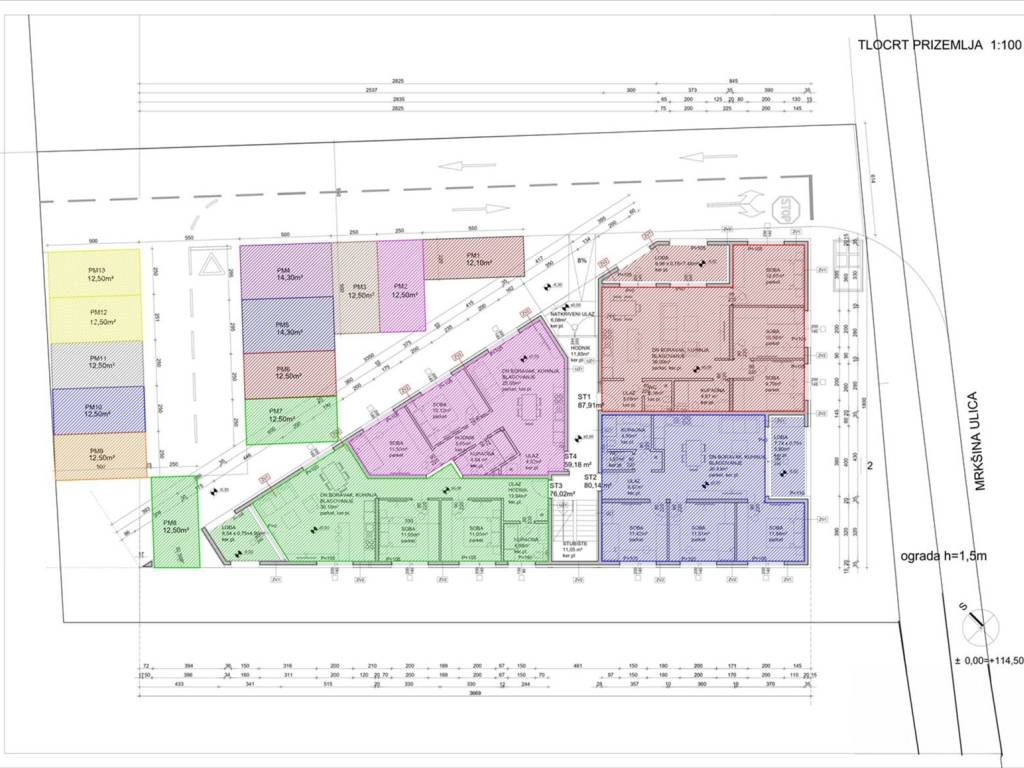 U prizemlju i na prvom katu nalaze se po 4 stana, dok su na uvučenom katu projektirana 3 stana.