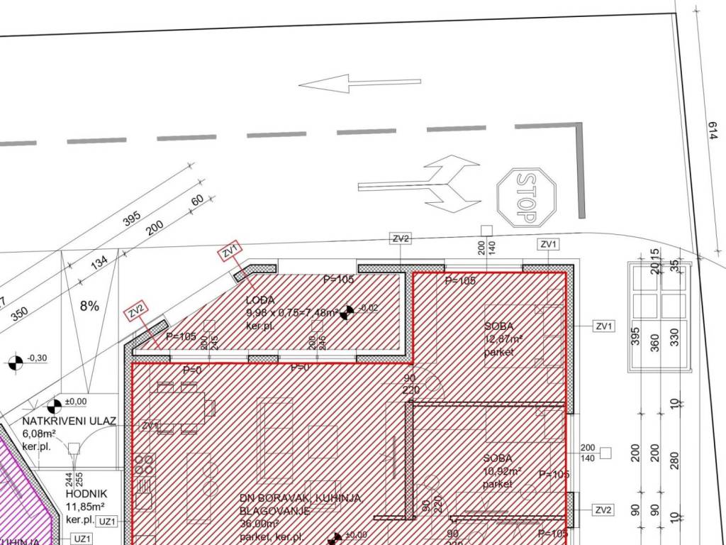 1. Četverosobi stan u prizemlju oznake ST1, podne površine 80,43 m², koji se sastoji od ulaza, kupaone, wc-a, dnevnog boravka, blagovaonice i kuhinje i tri sobe s lođom u prizemlju podne površine 9,98 m², kojem pripada parkirno mjesto oznake PM1 u prizemlju podne površine 12,10 m²