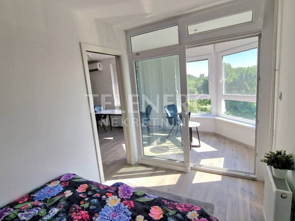 Stan od 50 m2 na Savici uz nasip orijentiran na Jug i Zapad, sa jednom spavaćom sobom, dnevnim boravkom, kupaonom, kuhinjom, predsobljem za samca (jedna osoba) ili par (dvije osobe) u Zagrebu.