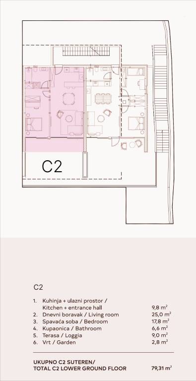 Prodaje se stan u luksuznoj novogradnji smješten u suterenu moderne zgrade s ukupno četiri stambene jedinice, u drugom redu od mora, u neposrednoj blizini Marine Dubrovnik.