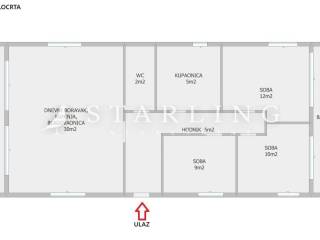 Stan se sastoji od open space dnevnog boravka s blagovaonicom i kuhinjom, tri spavaće sobe, kupaonice s WC-om, WC-a, hodnika i dva balkona.