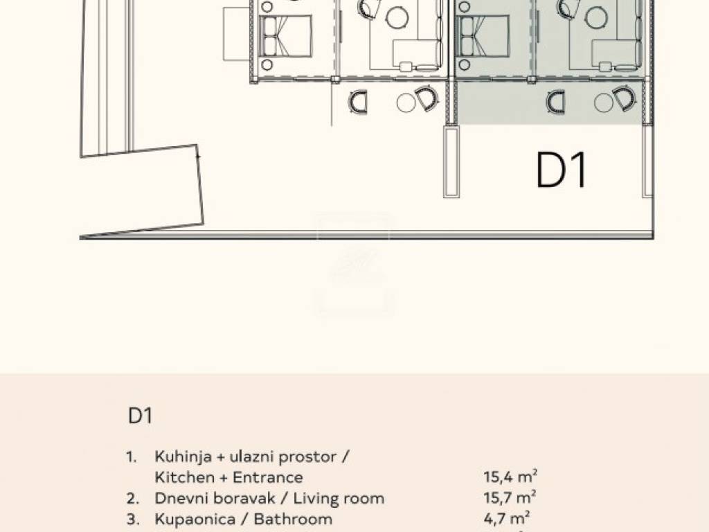natkrivene terase (3 m2 - uračunati koeficijent)