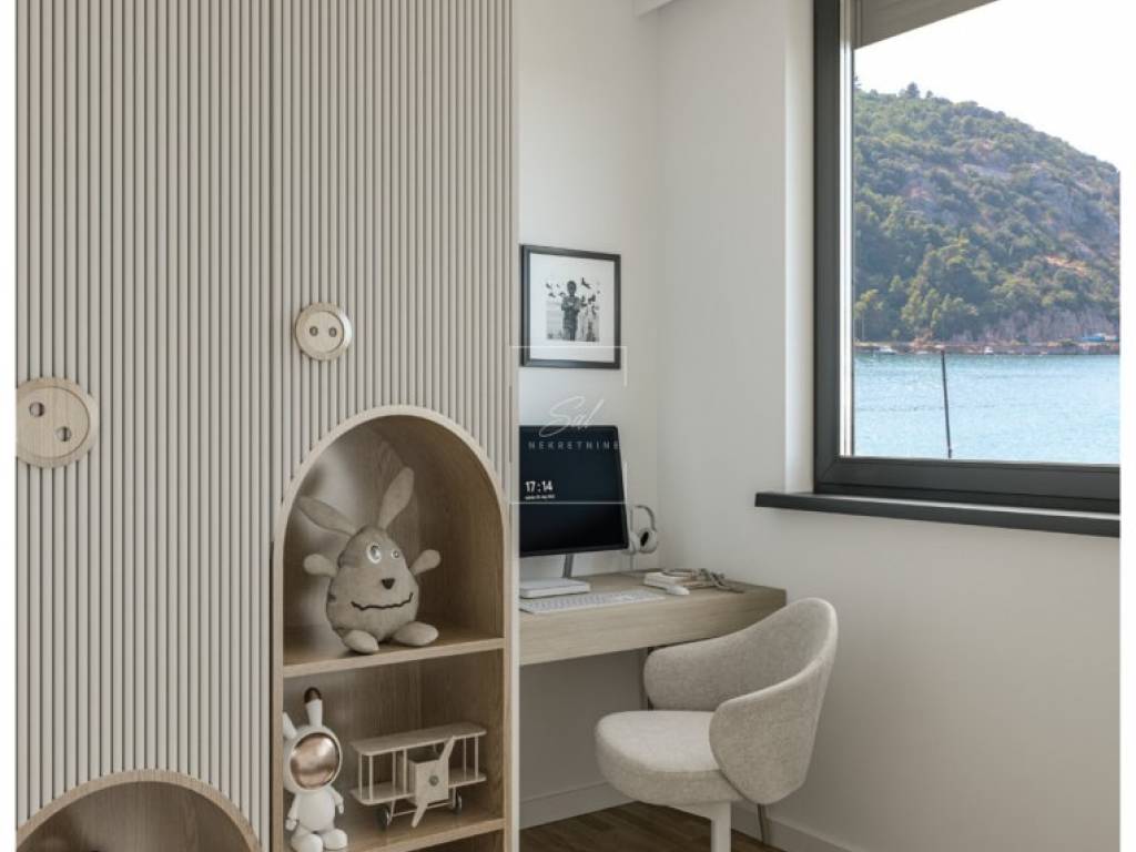 Stan se odlikuje promišljenim rasporedom prostora, visokokvalitetnim materijalima i ugodom koju donosi blizina mora.
