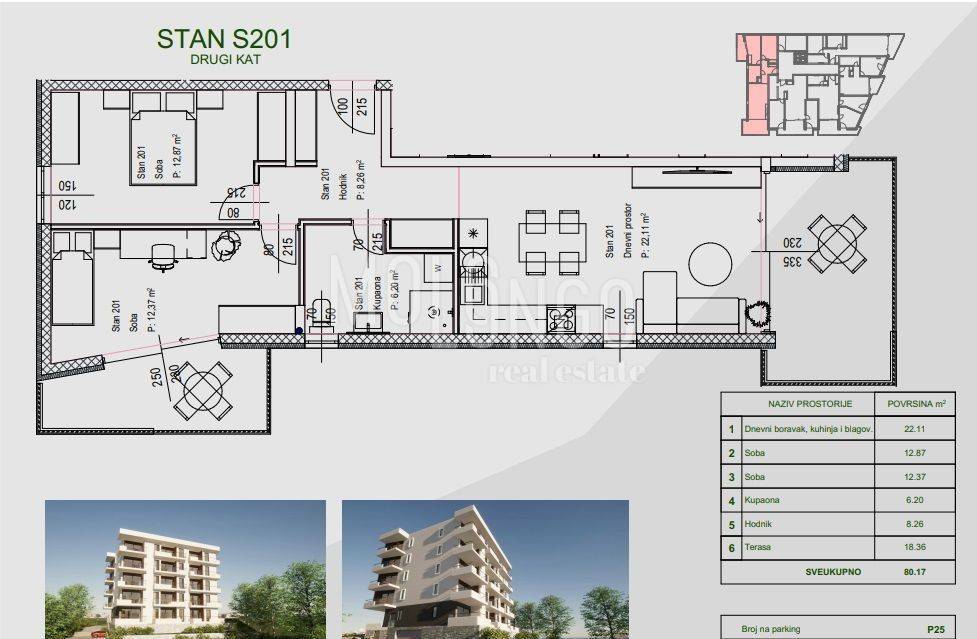 5 nadzemnih etaža s modernim stanovima (prizemlje + 4 kata)
