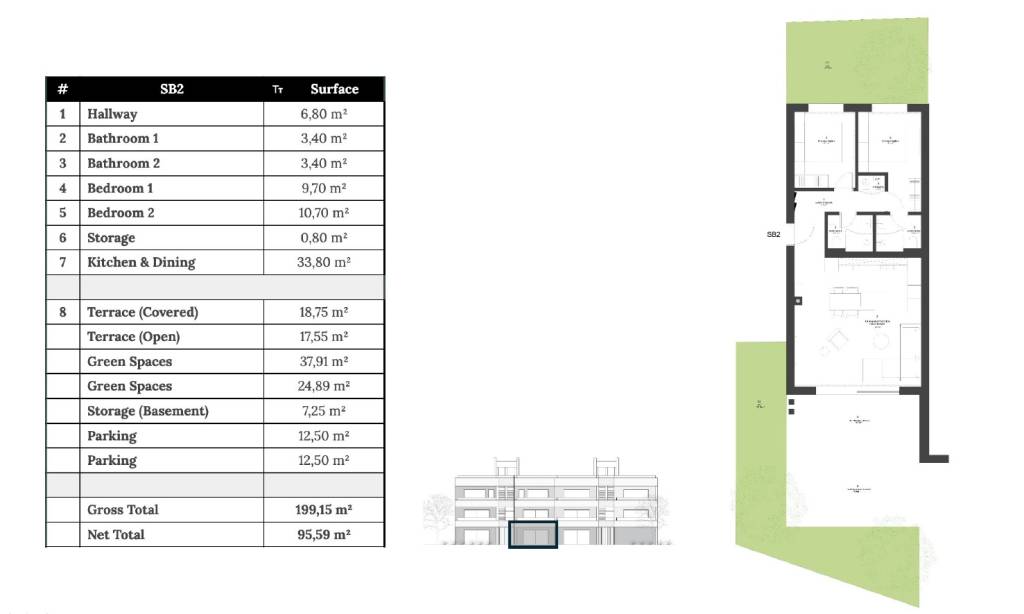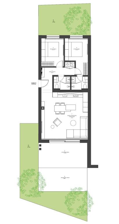 Ovaj dvosoban stan B2 nalazi se u prizemlju zgrade i sastoji se od: