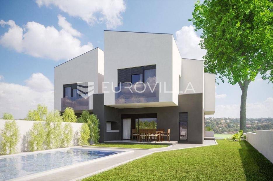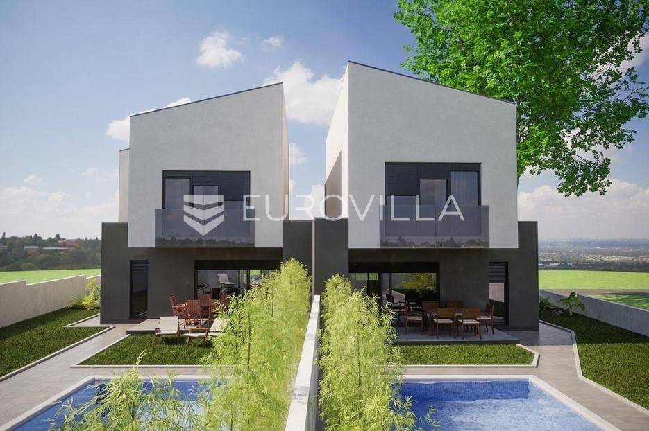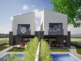 Istra, Kaštelir, iznimna investicijska prilika u Istri - građevinsko zemljište od 832 m², nadomak Poreča.Ključna prednost je ishođena pravomoćna dozvola za dvije moderne kuće s bazenima (svaka 150 m² neto). Projekt odlikuje atraktivan suvremeni dizajn i funkcionalan raspored, osiguravajući udobnost i estetsku privlačnost. Kuća se sastoji od 2 etaže. U prizemlju se nalazi open space koncept dnevnog boravka, kuhinje i blagovaone, spavaća soba, gostinjska kupaona, ostava te dvije terase dok se na katu nalaze 3 spavaće sobe svaka s vlastitom kupaonom.Sva potrebna infrastruktura (struja, voda, kanalizacija) dostupna je uz parcelu. Komunalni doprinosi su plaćeni, što omogućuje trenutačni početak radova bez birokratskih prepreka. Spremnost za gradnju ključna je za brzu realizaciju projekta.S traženom lokacijom blizu mora i Poreča, atraktivnim projektom i riješenom dokumentacijom, vaša investicija je sigurna i spremna za uspješnu realizaciju u jednoj od najpoželjnijih regija Hrvatske.Idealno smješteno, pruža privatnost i pristupačnost. Samo 12 km od porečkih plaža, restorana i baštine, lokacija je savršena za luksuzni odmor ili stalno stanovanje.Za više informacija stojimo vam na raspolaganju.