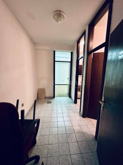 Iznajmljuje se poslovni prostor veličine 84 m², smješten na 2. katu zgrade u samom centru grada. Prostor se sastoji od hodnika, tri kancelarije (s mogućnošću pregradnje velike kancelarije u dvije manje), spremišta, WC-a te vanjske terase koja može služiti kao pušiona.
