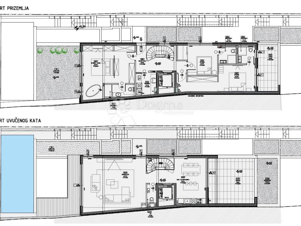 Urbana vila u srcu Zagreba – spoj luksuza, privatnosti i modernog života U jednoj od najprestižnijih zagrebačkih četvrti, smještena je ekskluzivna urbana vila s dvije stambene jedinice, trenutno u fazi izgradnje. Planirano useljenje predviđeno je za prosinac 2025. godine. Ova suvremeno dizajnirana vila pruža savršenu ravnotežu između privatnosti i blizine gradskog središta – svega nekoliko minuta vožnje dijeli vas od Trga bana Josipa Jelačića, dok okruženje mirne ulice i zelenila osigurava potpunu udobnost stanovanja. Penthouse – luksuz na dvije etaže: Prostrani četverosobni dvoetažni penthouse ukupne obračunske površine oko 218 m² (NKP) oduševljava promišljenim rasporedom, vrhunskom opremom i privatnim vrtom s bazenom. Donja etaža (93,15 m²): tri prostrane spavaće sobe, svaka s vlastitom kupaonicom, funkcionalna vešeraj prostorija, loggia (10,44 m² / obračunski 7,83 m²) te privatni vrt površine 134,20 m² (obračunski 27 m²) s bazenom dimenzija 7 × 3 m. Gornja etaža (69,92 m²): otvoreni dnevni boravak s kuhinjom i blagovaonicom, toaletom te tri terase površina 4,75 m², 19,15 m² i 10,56 m² koje nude prekrasan pogled i obilje prirodnog svjetla. Stan uključuje tri garažna parkirna mjesta (25 m²) te koristi najnapredniju tehnologiju i materijale najviše kvalitete. Oprema i tehnologija: -Dizalica topline i podno grijanje u svim prostorijama -Klimatizacija u svakoj sobi -Pametna kuća – centralno upravljanje rasvjetom, roletama i klimatizacijom -Niskoenergetska gradnja s aluminijskom vanjskom stolarijom i troslojnim staklom -Protuprovalna ulazna vrata visoke sigurnosne klase Lokacija: Vila se nalazi u mirnom, zelenom dijelu Zagreba, okružena svim potrebnim sadržajima za udoban svakodnevni život – u neposrednoj blizini nalaze se vrtići, škole, trgovine, sportski i zdravstveni objekti, kao i brze prometne poveznice prema centru grada i glavnim zagrebačkim arterijama. ID KOD AGENCIJE: ZG85140 Valerija Topkin Agent s licencom Mob: 091/539-9908 Tel: 01/647-3011 E-mail: valerija.topkin@dogma-nekretnine.com www.dogma-zagreb.com Ivan Teri Asistent u posredovanju Mob: 099 737 8427 Tel: 01/647-3011 E-mail: ivan.teri@dogma-nekretnine.com www.dogma-zagreb.com
