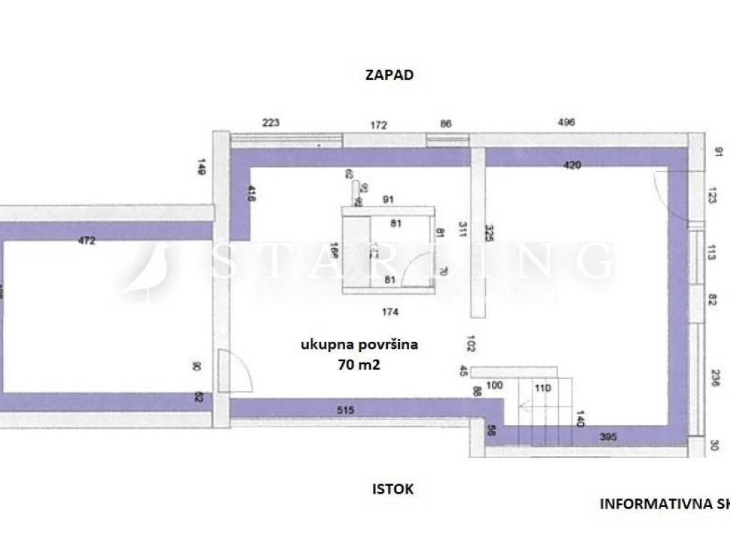 Upisana površina iznosi 70 m2, dok u naravi ima nešto više iskoristivog prostora.