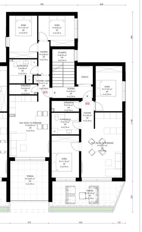 Čiovo, Okrug Gornji - projekt moderne stambene novogradnje zgrade s 15 stanova povezanih liftom s garažnim mjestom. STAN S12Smješten na drugom katu zgrade zatvorene površine 58 m2 sastoji se od hodnika i garderobe, spremišta, dvije spavaće sobe, kupaonice, zajedničkog prostora kuhinje, blagovaonice i dnevnog boravka s izlazom na prostran balkon površine 14,7 m2. Stanu pripada i jedno garažno parkirno mjesto te je ukupna neto korisna površina nekretnine 73 m2.U opremanju stana koriste se kvalitetni materijali i oprema te kupac ovisno o fazi izgradnje može utjecati na interijer stana.Mirna lokacija samo 400 metara zračne linije do plaže i svih sadržaja.Useljenje je planirano krajem 2026. godine.Više informacija na upit.