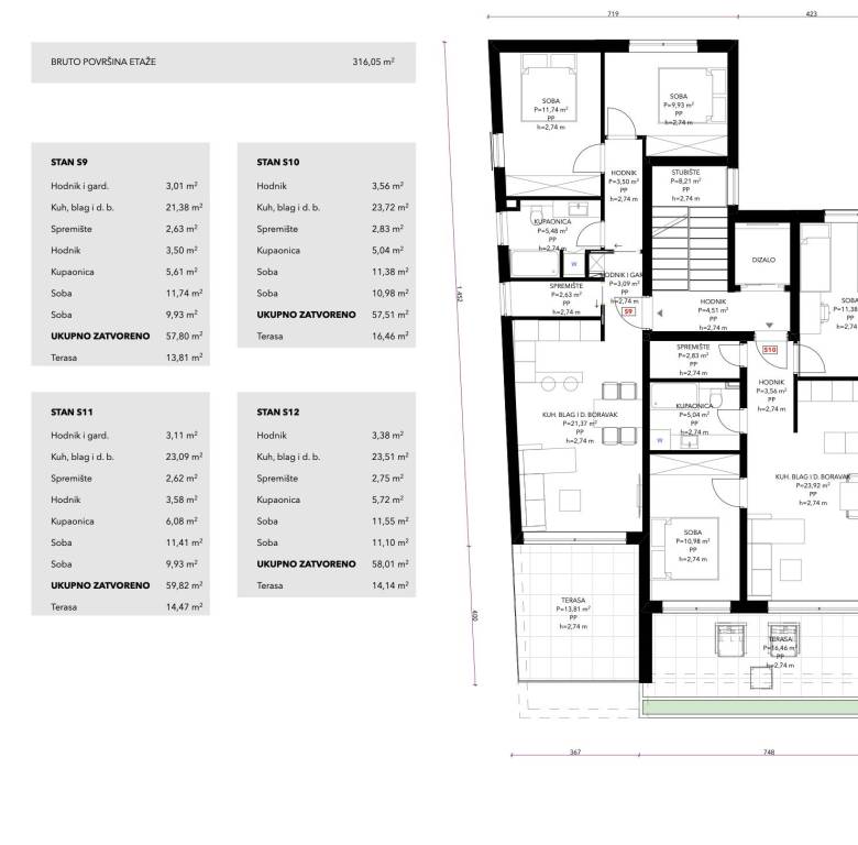 Čiovo, Okrug Gornji - projekt moderne stambene novogradnje zgrade s 15 stanova povezanih liftom s garažnim mjestom. STAN S9Smješten na drugom katu zgrade zatvorene površine 58 m2 sastoji se od hodnika i garderobe, spremišta, dvije spavaće sobe, kupaonice, zajedničkog prostora kuhinje, blagovaonice i dnevnog boravka s izlazom na prostrani balkon površine 13 m2. Stanu pripada i jedno garažno parkirno mjesto te je ukupna neto korisna površina nekretnine 72 m2.U opremanju stana koriste se kvalitetni materijali i oprema te kupac ovisno o fazi izgradnje može utjecati na interijer stana.Mirna lokacija samo 400 metara zračne linije do plaže i svih sadržaja.Useljenje je planirano krajem 2026. godine.Više informacija na upit.