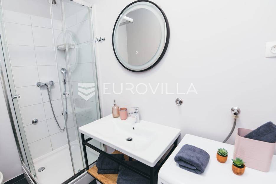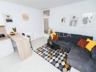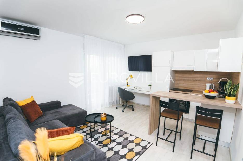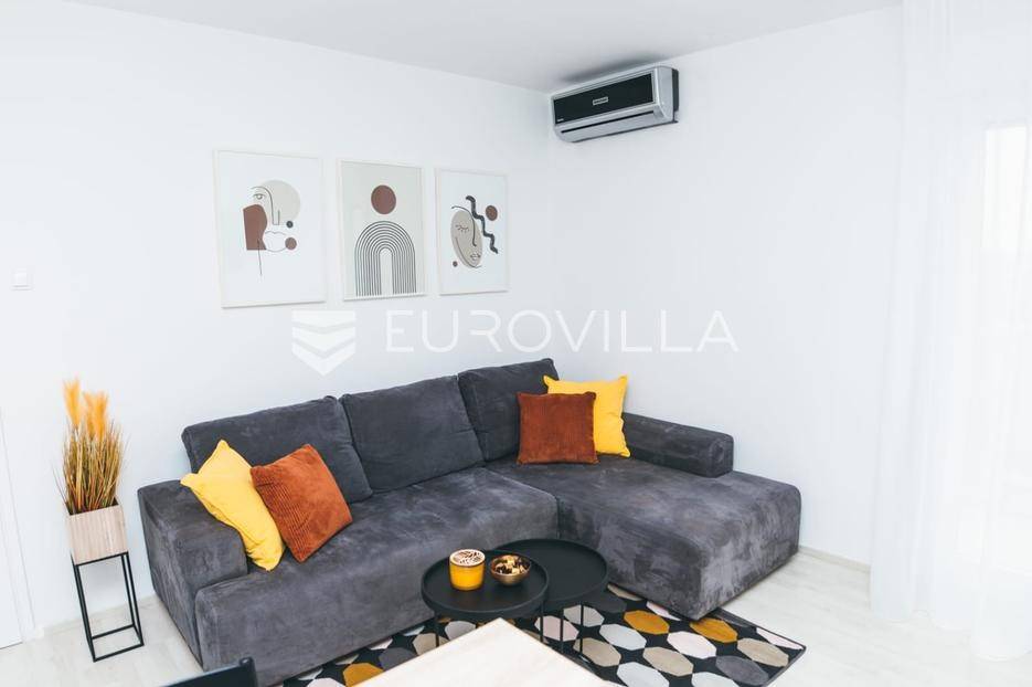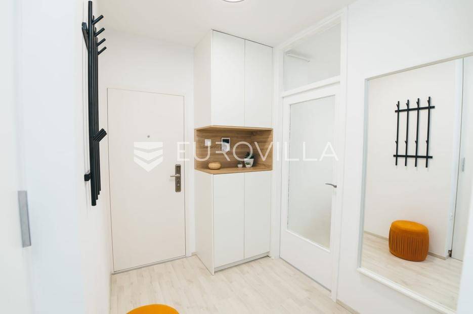Stan se sastoji od ulaznog hodnika s ugradbenim ormarima po mjeri, prostranog dnevnog boravka s kuhinjom i blagovaonicom (open space koncept), odvojene spavaće sobe, velike kupaonice i balkona. Stan se prodaje potpuno namješten novim, modernim namještajem i opremljen novim uređajima te je odmah useljiv.