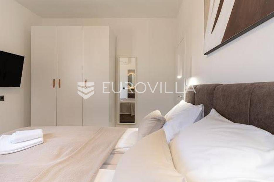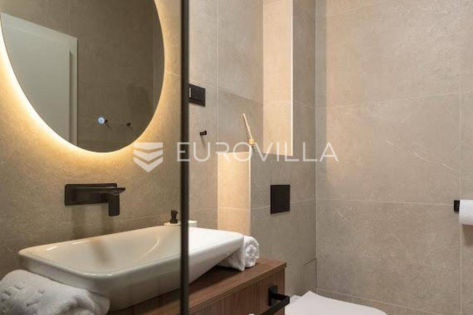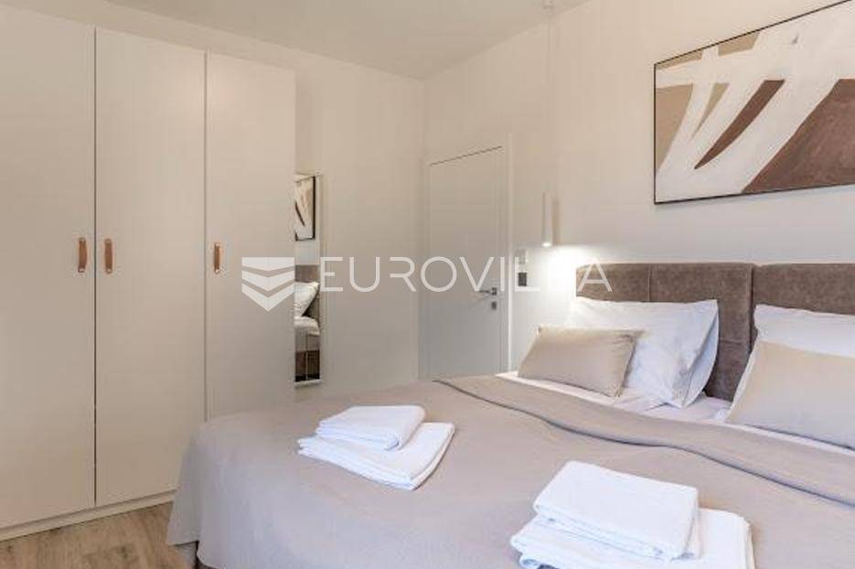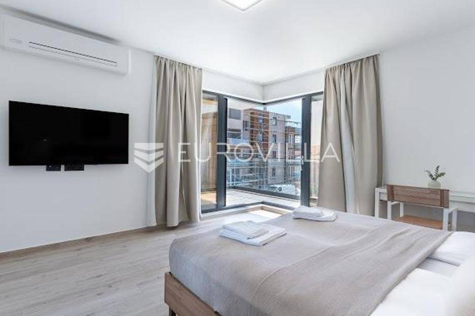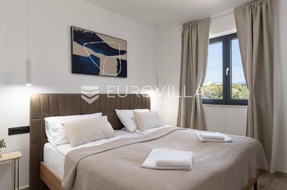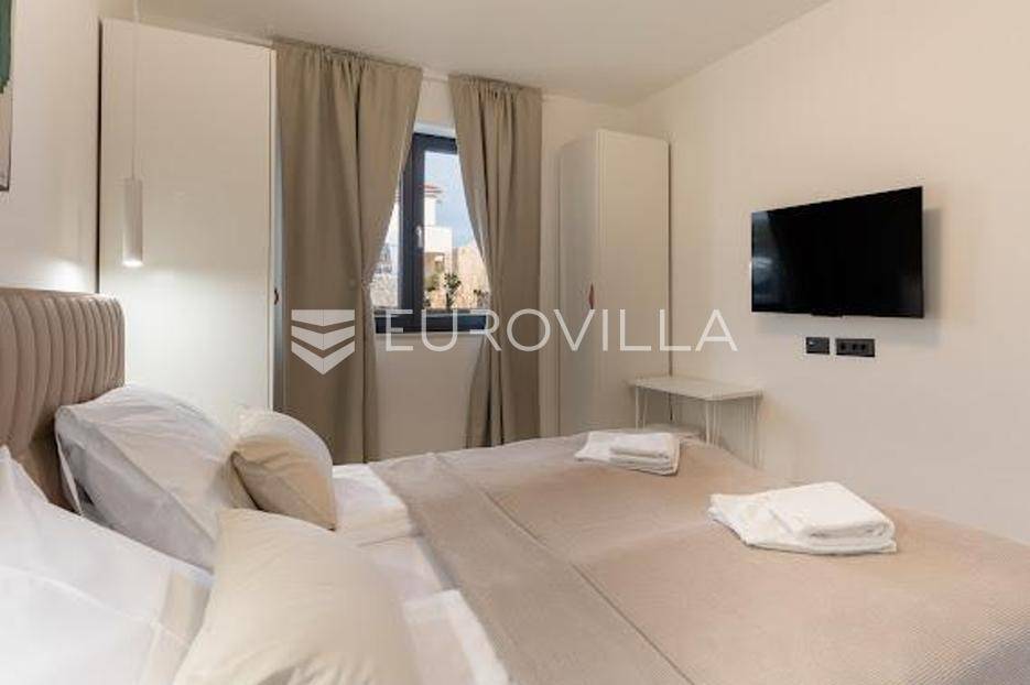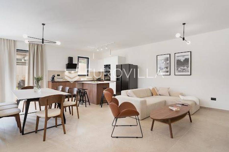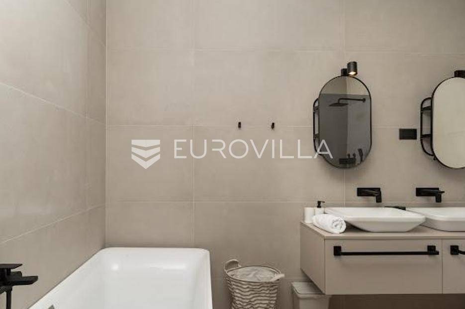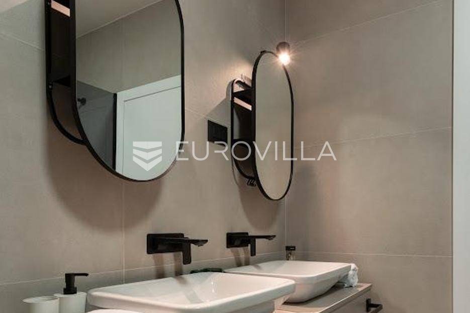 Pag Mandre, dvojna kuća s bazenom nalazi se na zemljištu površine 465 m2.Kuća se sastoji od prizemlja i kata, ukupne površine 220 m2.U prizemlju se nalazi kuhinja, blagovaonica i dnevni boravak otvorenog koncepta, spavaća soba s kupaonicom, gostinjski wc, vešeraj i spremište.Unutarnjim stepenicama dolazimo na kat gdje se nalazi ulazni prostor, tri spavaće sobe s kupaonicama te prostrana terasa.Nalazi se na 350 metara udaljenosti od mora i plaže.Oprema:AB konstrukcijaravni krov sa hidro i termoizolacijomtroslojna antracit stolarija sa brončanim efektomkomarnicivanjska ambijentalna rasvjetabio pergola na daljinsko upravljanjeDaikin dizalica toplinepostavljena priprema za solarne panelevideo nadzorsmart housesolarni tušU dvorištu se nalazi grijani bazen i jacuzzi koji su idealni za opuštanje i odmor u prekrasno uređenom okolišu.Osiguran je parking za dva automobila.Ova nekretnina izvrsna je kao kuća za odmor ili investicija za sve one koji se žele baviti turizmom.Više informacija na upit.