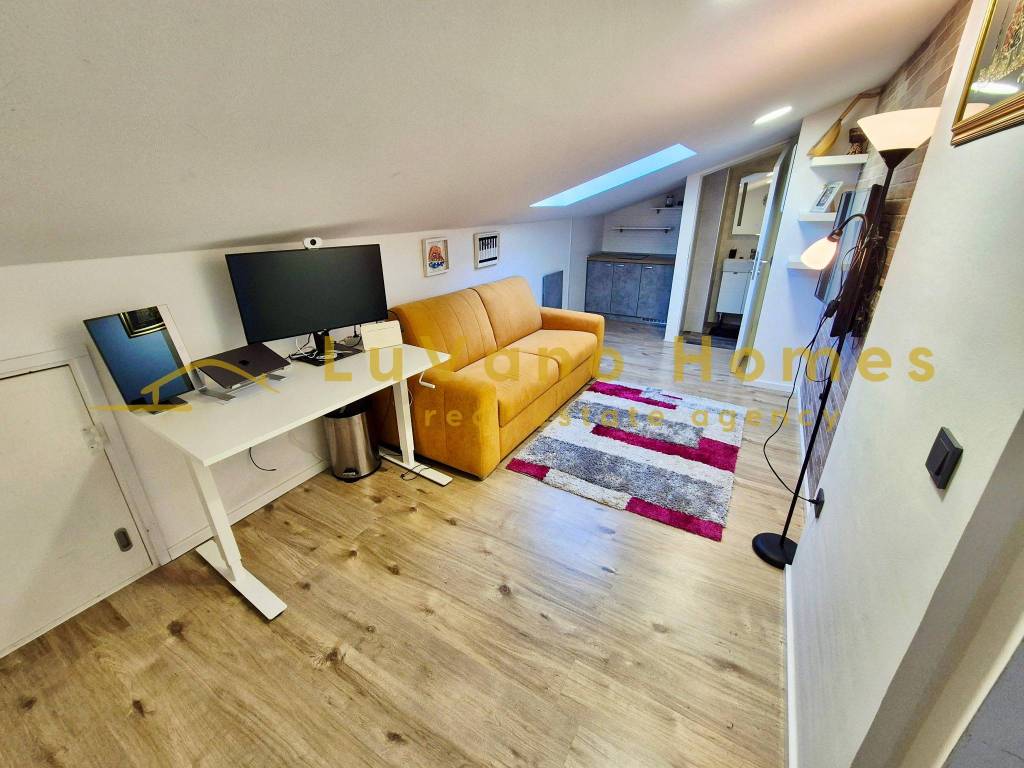 U potkrolju se nalazi i uređeni studio apartman površine 19,96 m². Ova zasebna cjelina (životni prostor s čajnom kuhinjom i kupaonicom s WC-om) idealna je za: