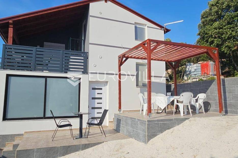 Na prodaju je šarmantna kuća smještena u mirnom naselju Peruški, okružena netaknutom prirodom, svega nekoliko minuta hoda od kristalno čistog mora. Ova funkcionalna nekretnina pruža savršenu ravnotežu između odmora i praktičnosti, idealna je kako za turistički najam, tako i za obiteljski boravak.Kuća se sastoji od dva potpuno opremljena apartmana i dodatne sobe s privatnim ulazom.Objekt ima ukupnu stambenu površinu od 80 m² i nalazi se na parceli od 246 m². Sastoji se od dva apartmana površine po 40 m², od kojih svaki ima vlastitu terasu i kupaonicu, dok se na polukatu nalazi dodatna soba. Opremljen je solarnim sustavom snage 2 kW, s mogućnošću proširenja, a instalacije su izvedene PVC cijevima ispod fasade.Grijanje vode osigurano je plinskim protočnim bojlerom i pumpom za dizanje pritiska, koja se može napajati na 12 V ili 220 V. Opskrba vodom dolazi iz spremnika povezanog na novu vodovodnu instalaciju, uz mogućnost korištenja kišnice. Kuća ima PVC septičku jamu te izvrsnu toplinsku i hidroizolaciju - krov je izveden s paropropusnom folijom, fasada je debljine 8 cm, temelji su hidroizolirani, a zidovi i strop obloženi kamenom vunom debljine 8 cm.Između etaža i na ulazu na kat postavljena su hrastova gazišta debljine 5 cm, što prostoru daje toplinu i eleganciju. Objekt ima kompletnu antensku i elektroinstalaciju s izmjeničnim prekidačima na ulazu i izlazu iz svakog apartmana. Na ulazu u parcelu nalazi se aluminijska klizna ograda, dok je ostatak ograđen hrastovim letvicama u prirodnoj boji s aluminijskim stupovima između, uz pripremu za motor na daljinsko upravljanje.Kuća ima privatni parking koji može primiti tri do četiri automobila. Opremljena je novom PVC stolarijom s komarnicima te potpuno novom elektroinstalacijom sa zaštitnom sklopkom, osiguračima i uzemljenjem. Iza objekta izvedeni su kanalizacijski i vodovodni priključci za vanjski WC i tuš, uz mogućnost izgradnje ljetne kuhinje s prekrasnim pogledom na more.Za više informacija kao i dogovora oko termina razgledavanja Vam stojimo na raspolaganju