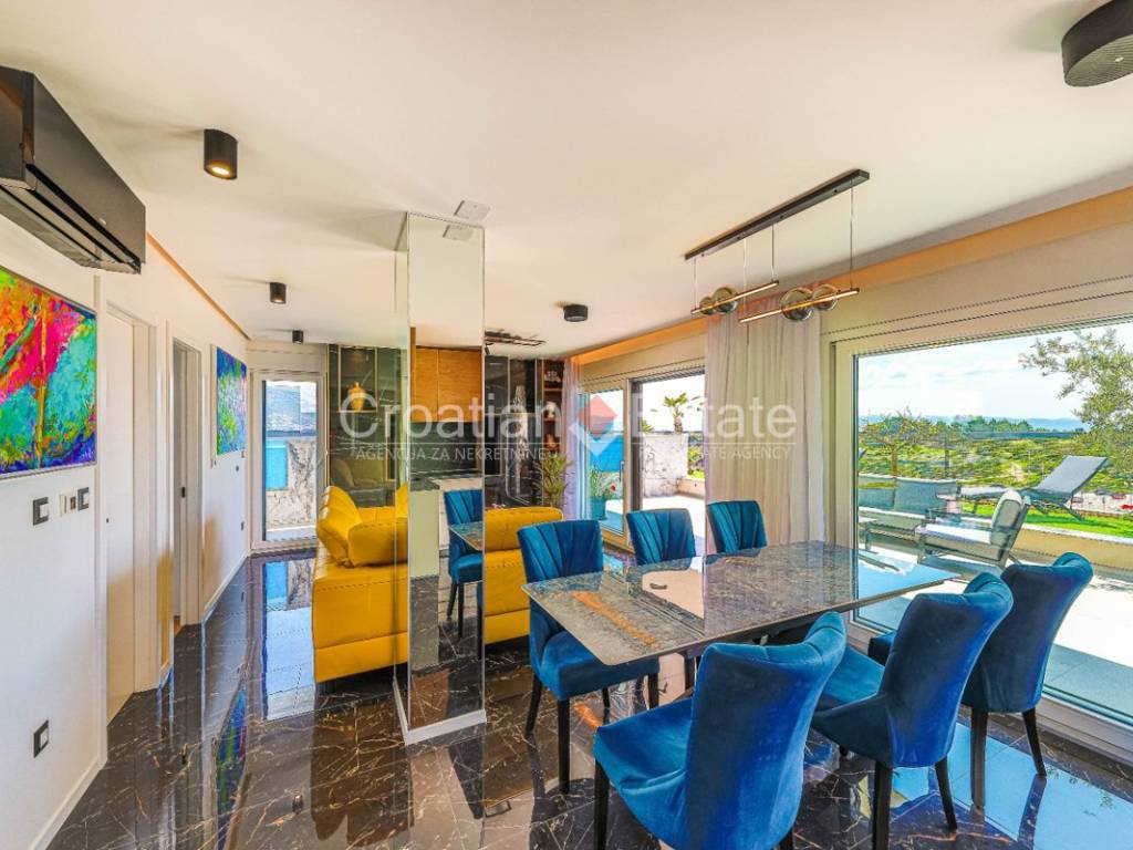 Iznajmljujemo luksuzni penthouse, površine 80m2, s lijepim pogledom na more i otoke, smješten u Splitu, u četvrti Sirobuja, na zadnjem katu šestoetažne novogradnje s liftom.