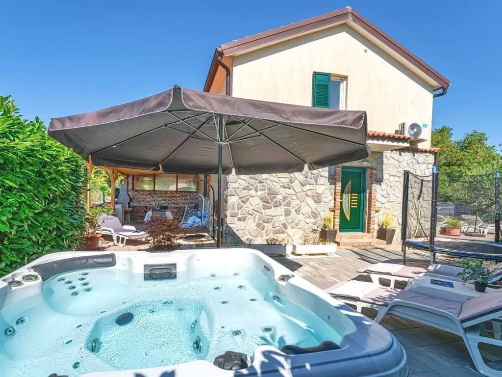 Posebnu vrijednost ovoj nekretnini daje okućnica oplemenjena mediteranskim vrtom, bazenom i sunčalištem. Kuća ima dvije prostrane terase, od kojih je jedna natkrivena s roštiljem, a druga otvorena terasa vodi prema bazenu. Uređeni parkirni prostor omogućava parkiranje više vozila. Kuća s kata nudi i prekrasan pogled na more i priobalje, što dodatno doprinosi atraktivnosti nekretnine.