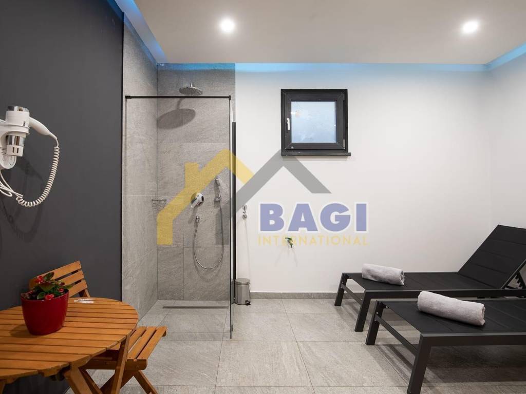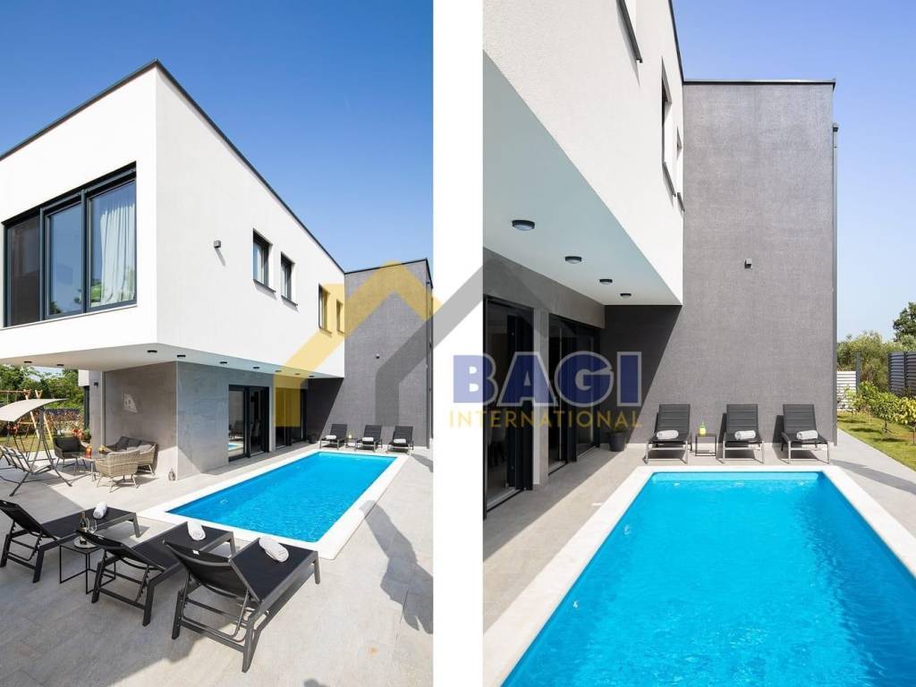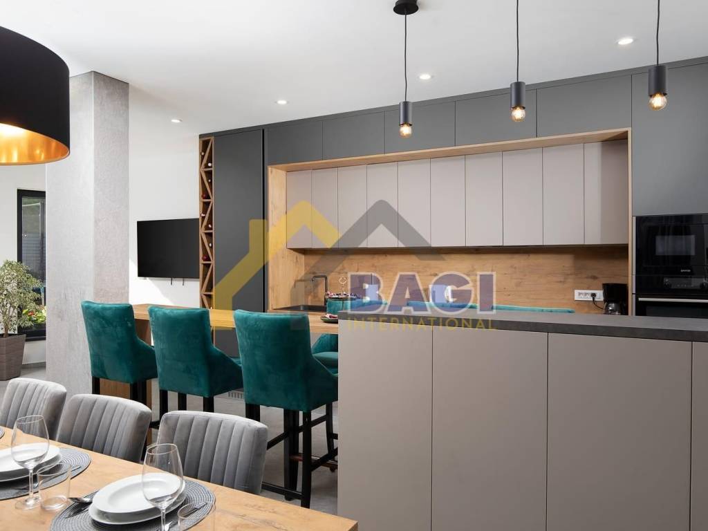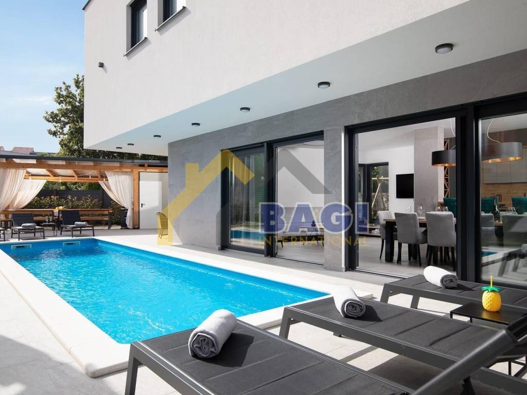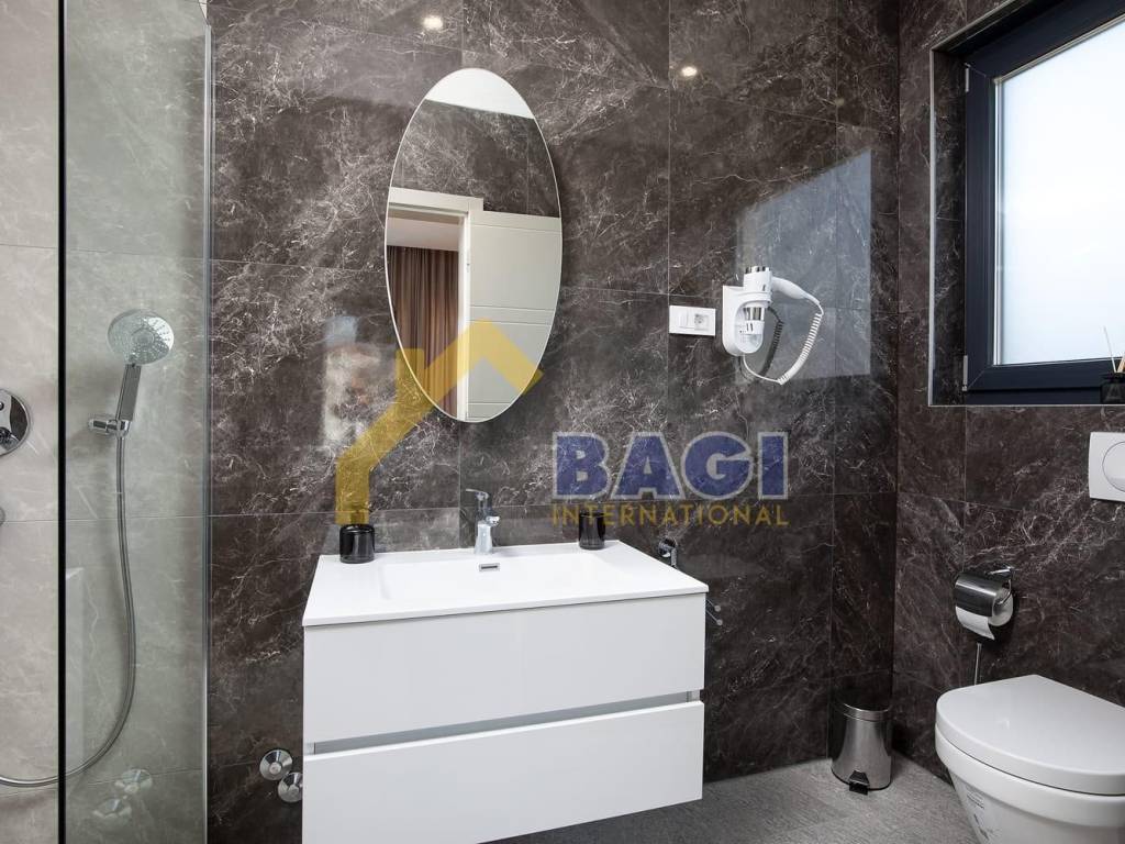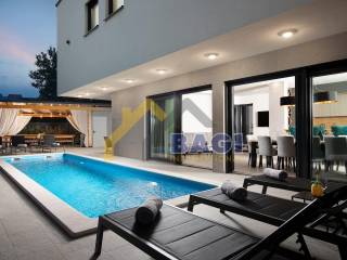 U tom predivnom turističkom mjestu smjestila se ova ljepotica koja odiše luksuzom, vila sa bazenom. Ukupne površine 900 m2, od toga 300 m2 stambene površine. Villa se proteže kroz dvije etaže, te se sastoji od 8 spavaćih soba, 8 kupaonica, dnevnog boravka, kuhinje sa blagovaonom te prostorije za opuštanje (sauna i jacuzzi). U villi je provedeno podno grijanje te je cijela villa klimatizirana. Središnji dio vrta zauzima grijani bazen 30 m2. Na podovima je keramika, PVC antracit stolarija sa roletama i komarnicima. Predviđeni kraj radova je proljeće 2021. Villa je kompletno namještena i kao takva se prodaje.