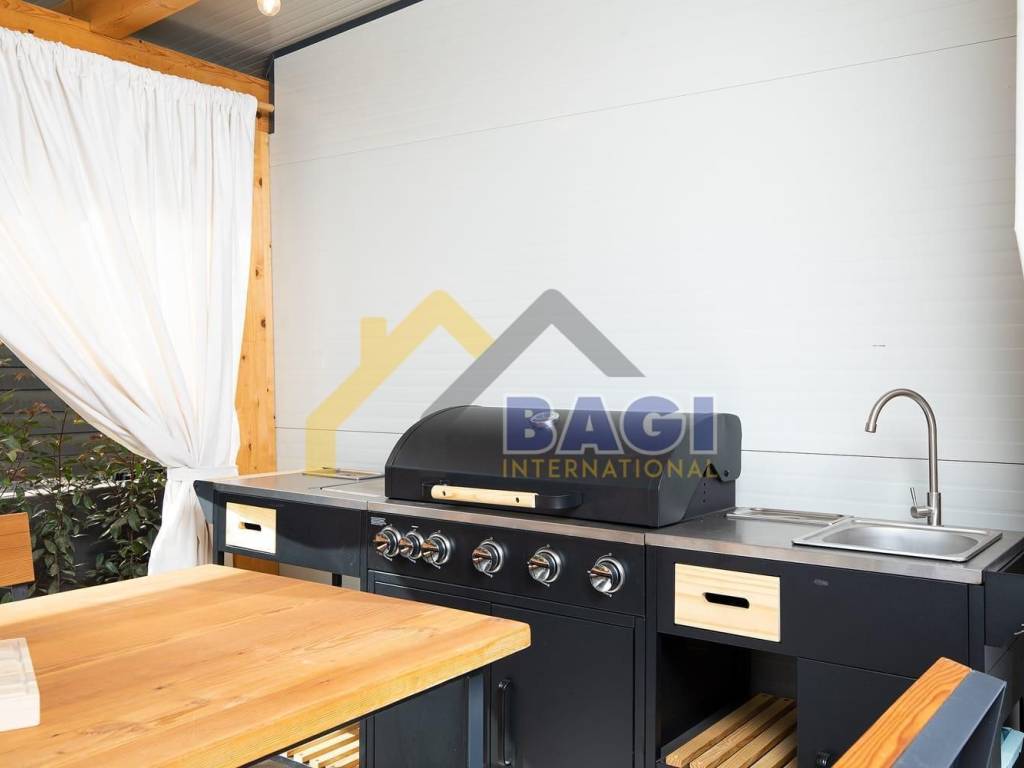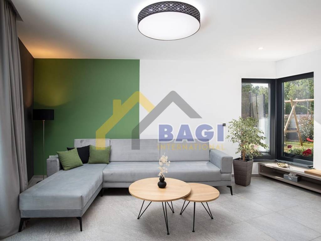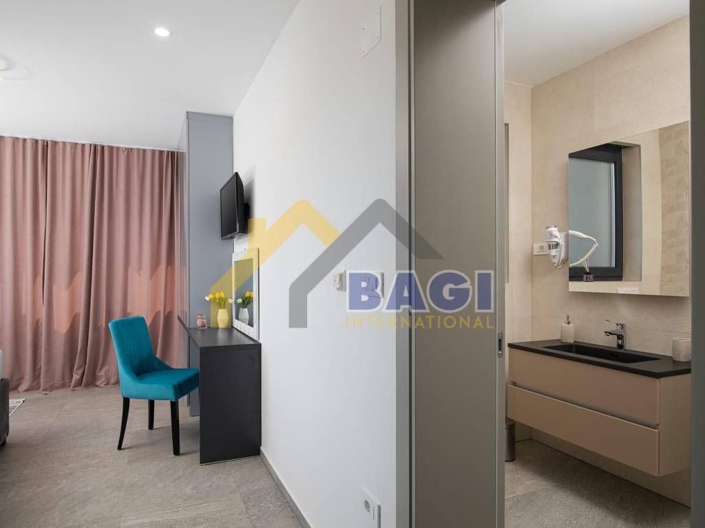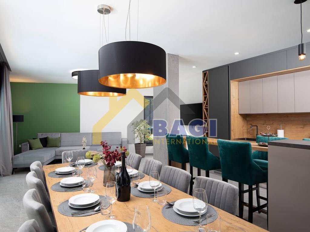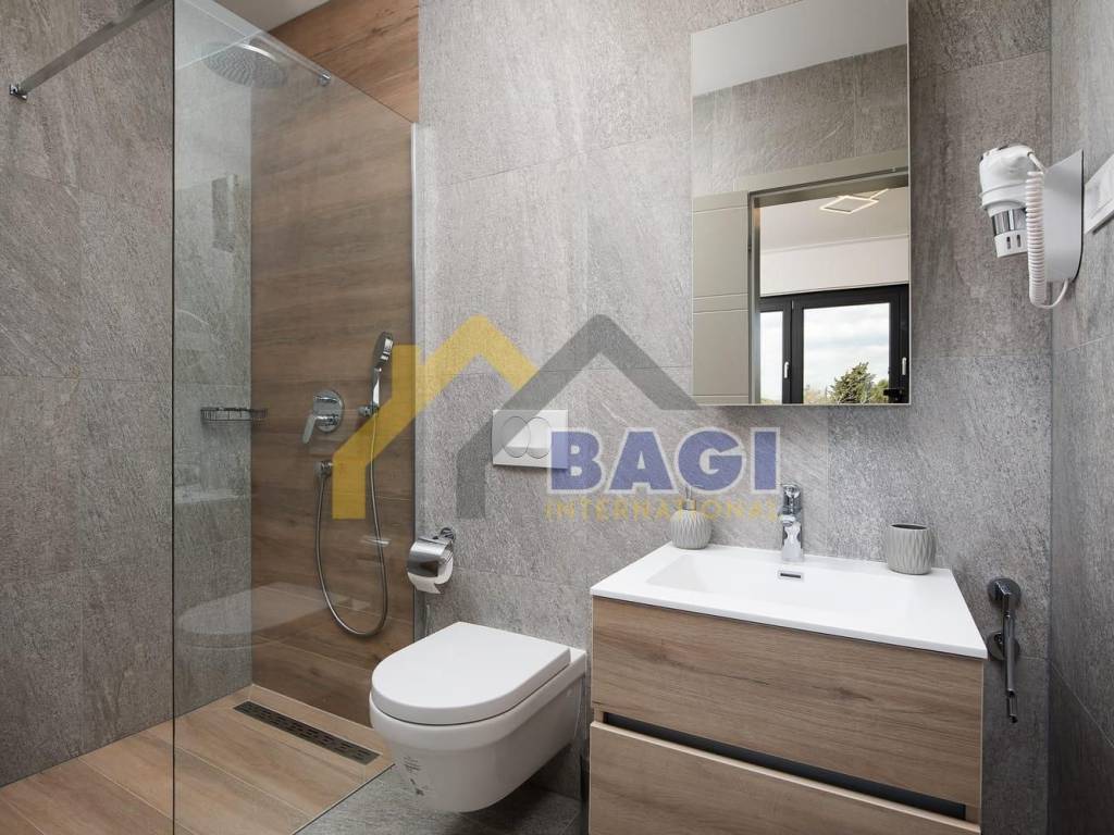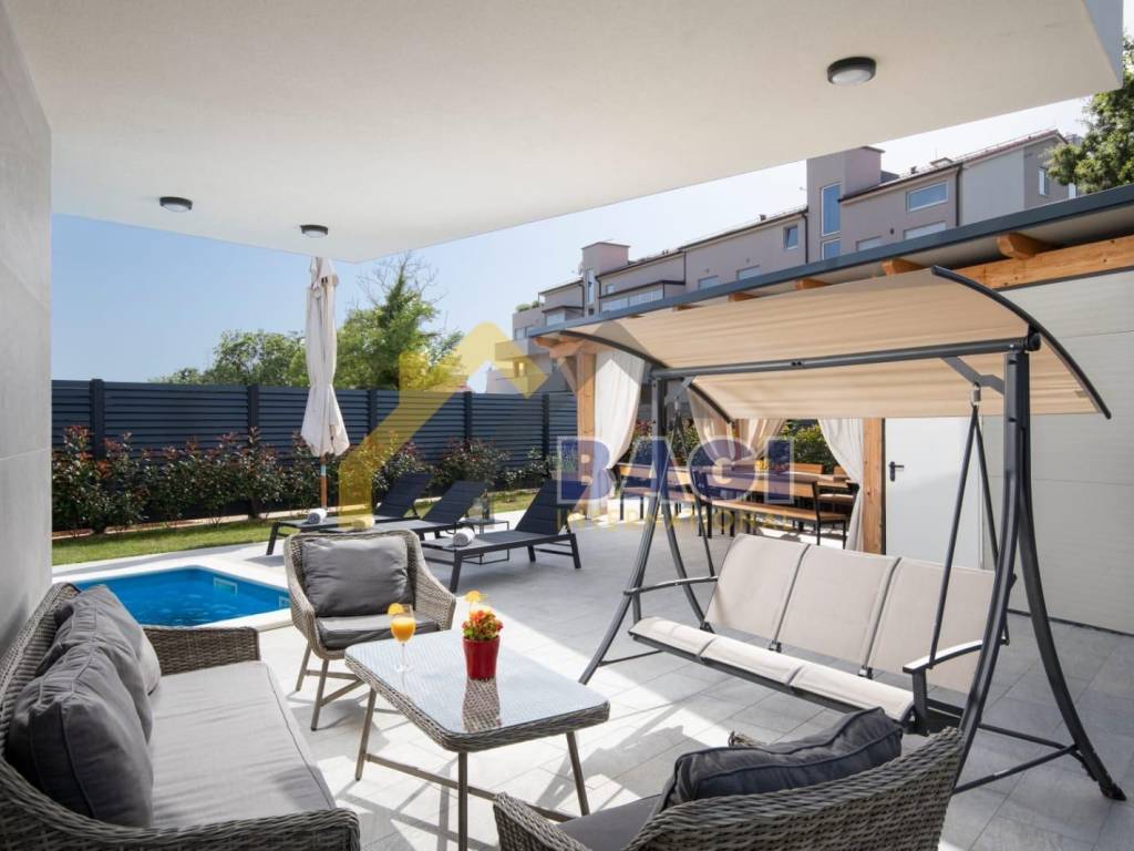 U tom predivnom turističkom mjestu smjestila se ova ljepotica koja odiše luksuzom, vila sa bazenom. Ukupne površine 900 m2, od toga 300 m2 stambene površine. Villa se proteže kroz dvije etaže, te se sastoji od 8 spavaćih soba, 8 kupaonica, dnevnog boravka, kuhinje sa blagovaonom te prostorije za opuštanje (sauna i jacuzzi). U villi je provedeno podno grijanje te je cijela villa klimatizirana. Središnji dio vrta zauzima grijani bazen 30 m2. Na podovima je keramika, PVC antracit stolarija sa roletama i komarnicima. Predviđeni kraj radova je proljeće 2021. Villa je kompletno namještena i kao takva se prodaje.