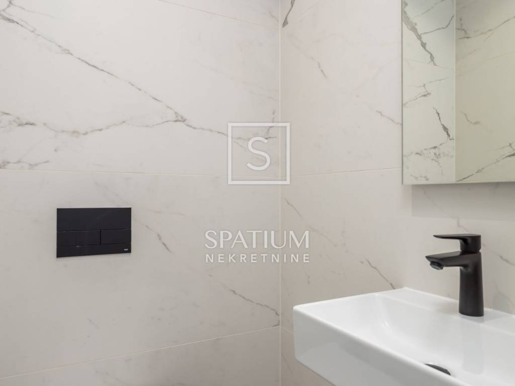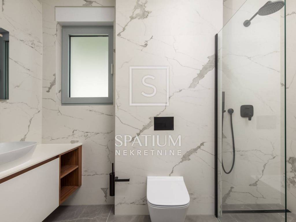 Opremljen je visokokvalitetnim materijalima (keramika, sanitarije, parketi, alu stolarija) kao i podnim grijanjem, klima uređajima, video nadzorom...