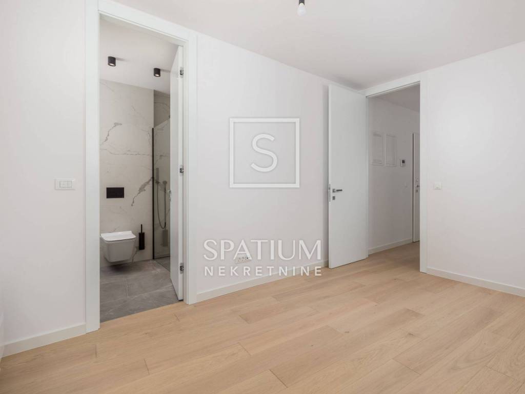 Sastoji se od dvije spavaće sobe, dvije kupaonice, zasebnog toaleta, dnevnog boravka s kuhinjom i blagovaonicom, balkona (19,84m2) dva garažna mjesta i jednog spremišta.