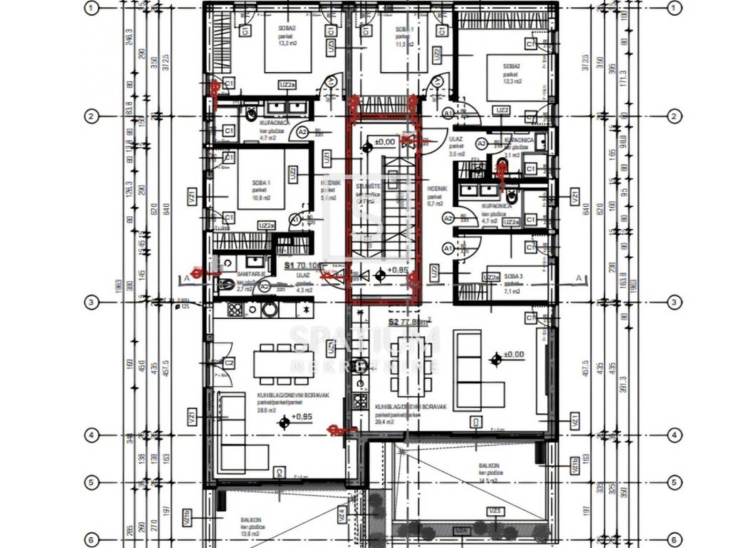 Svim stanovima pripada spremište i parkirno mjesto u sklopu okućnice.