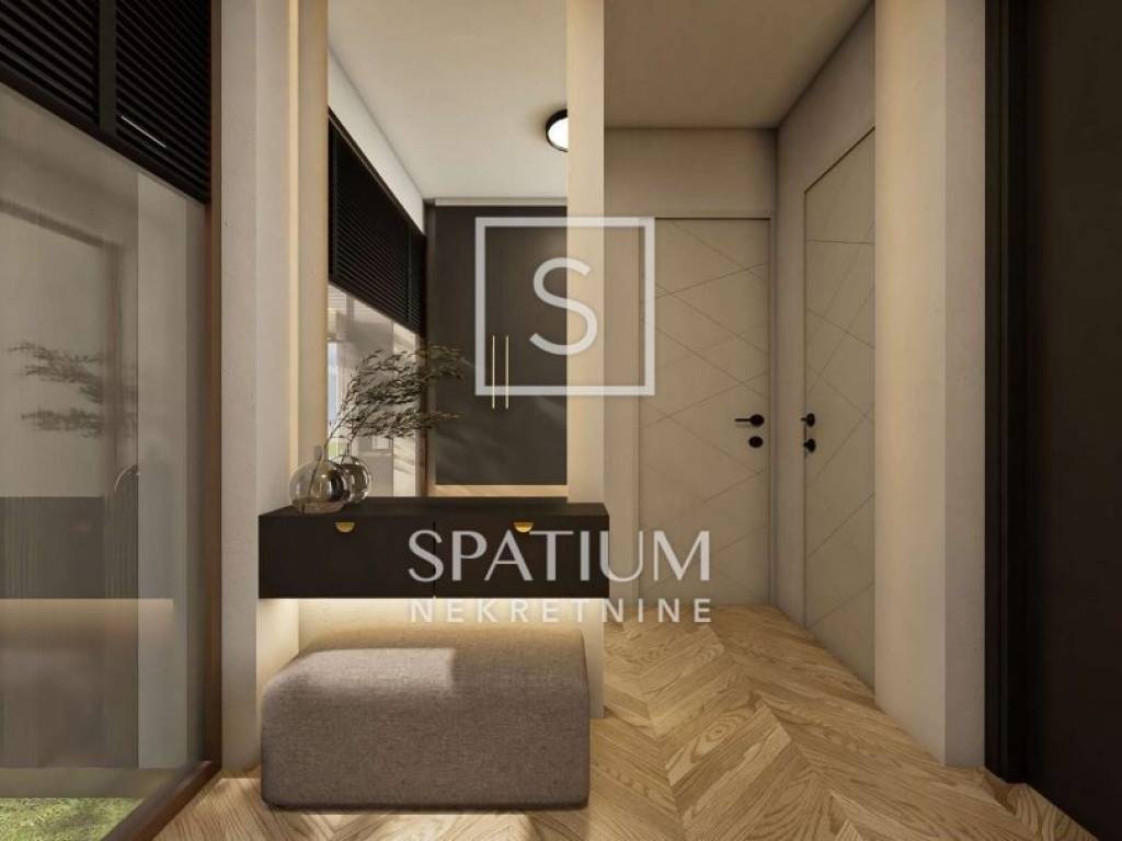 Sastoji se od prizemlja i kata. U prizemlju površine 121,46m2 nalazi se ulaz, dnevni boravak s kuhinjom i blagovaonom, spavaća soba i teretana sa saunom, toalet i praonica rublja. Na katu kuće površine 81,73 m2 nalaze se tri spavaće sobe, svaka s vlastitom kupaonicom, radni kutak te terasa s hidromasažnom kadom. Na velikoj okućnici smjestio se grijani bazen površine 48 m2 sa sunčalištem te natkrivena terasa zamišljena kao ljetna kuhinja s roštiljem. Kući pripadaju i tri parkirna mjesta. Oglašena cijena je bez unutarnjeg uređenja, dok s uređenjem ista iznosi 930.000 EUR.