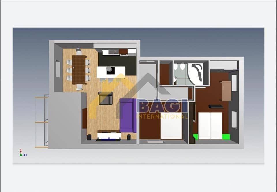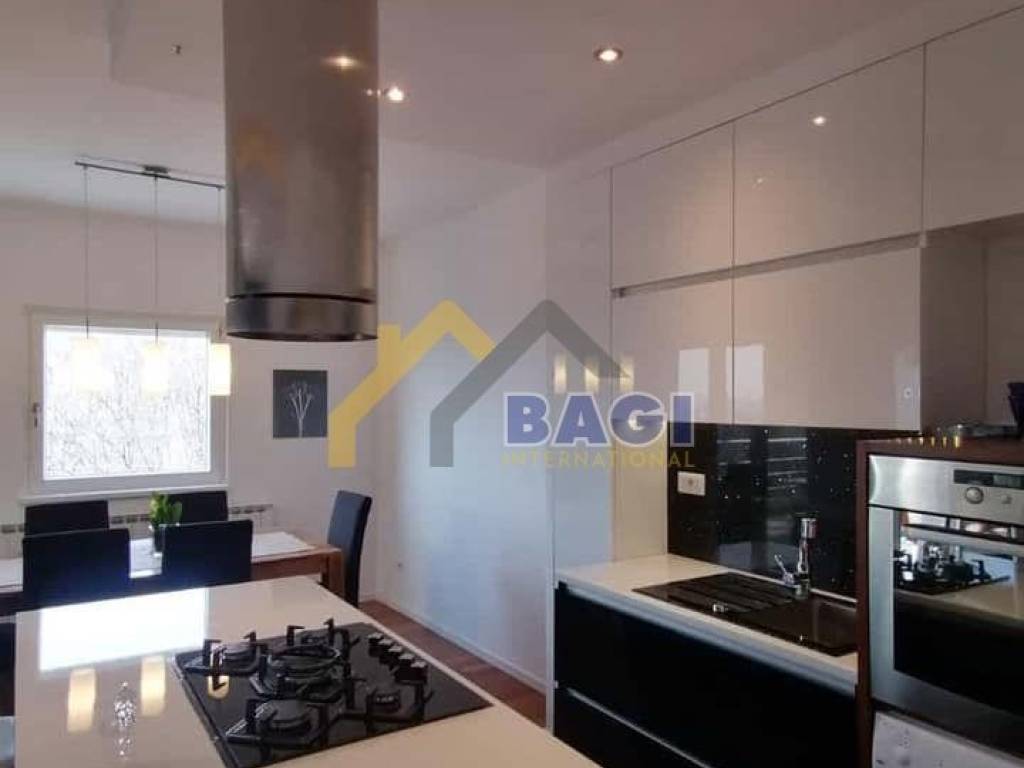 Stan se sastoji od ulaznog djela (4,2 m2) malog gostinskog toaleta (1,53 m2) sa lijeve strane i na desno od hodnika je otvoreni koncept koji obuhvaća kuhinju, blagavaonu i dnevni boravak (33,45m2). Iz blagavaone i dnevnog boravka izlazi se na veliku terasu (9,18 m2) koja gleda na zapad i ima predivan pogled na zapadni dio grada te samoborsko gorje u daljini. Iz ulaznog dijela postoji na lijevo hodnik (2,41 m2) koji vodi prema velikoj spavaćoj sobi (17 m2), maloj spavaćoj sobi (9,75 m2) i u veliku kupaonu (4,08 m2).