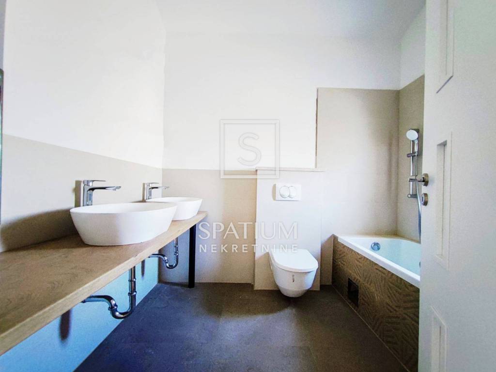 Dodatne karakteristike nekretnine uključuju podno grijanje, sustav klimatizacije (split sustav), intercom i videonadzor, alarmni sustav, sigurnosni sustav, vanjski tuš te četiri vanjska parkirna mjesta. Stan je djelomično namješten, a podovi su izrađeni od kvalitetnog tvrdog drveta. Eksterijer je lijepo uređen i obuhvaća vrt s bujnim zelenilom i automatskim sustavom za navodnjavanje, koji osigurava jednostavno održavanje bilja i travnjaka.