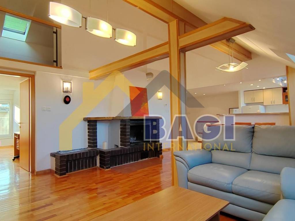 Stan se sastoji od prostranog ulaznog hodnika, kuhinje, blagavaone i dnevnog boravka koji čine jedinstvenu cijelinu s pogledom na grad, 3 spavaće sobe  velike kupaone i toalet. Glavna spavaća soba ima ulaz u kupaonu i izlaz na balkon. Grijanje je plinsko etažno. Stan ima klimu i otvoreni kamin u dnevnom boravku. Stan je kompletno opremljen i pruža predivan pogled na grad. Nalazi se na 4. katu, bez lifta. Blizina javnog prijevoza i svih potrebnih sadržaja.