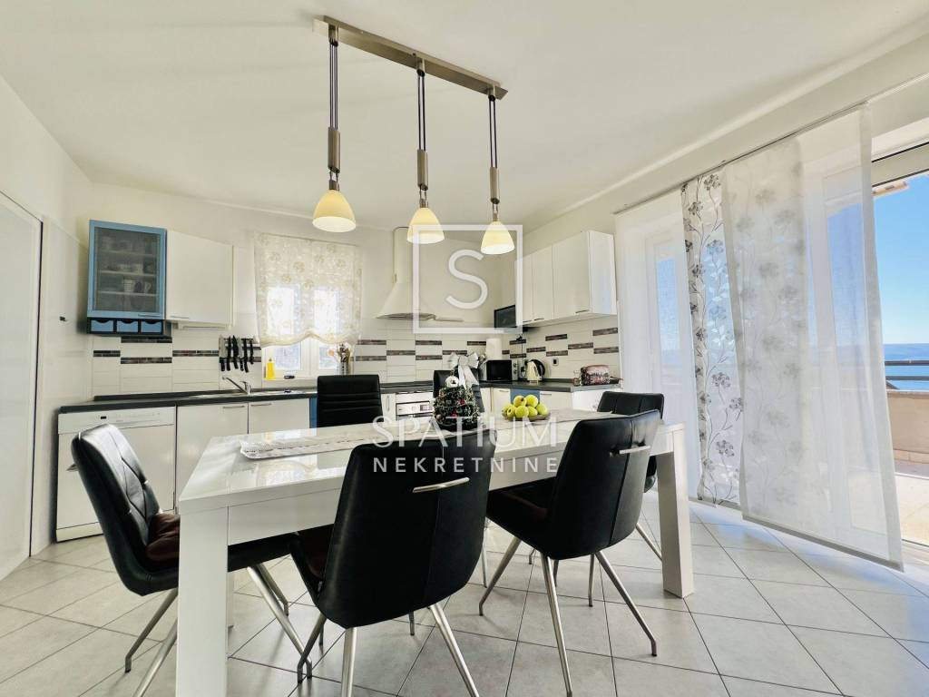 NOVI VINODOLSKI, u ponudi je prostran stan u blizini centra površine 120,58 m², smješten na prvom katu nedavno obnovljene stambene zgrade. Sastoji se od hodnika, tri spavaće sobe, dvije praktične ostave, dnevnog boravka, kuhinje s blagovaonicom te velike terase s pogledom na more. Pripada mu zajednički bazen sa sunčalištem u sklopu održavane i ograđene okućnice, mjesto za druženje i roštilj te parking mjesto. Zahvaljujući jugozapadnoj orijentaciji, prostor je obasjan prirodnom svjetlošću cijelog dana, stvarajući toplu i svijetlu atmosferu. Stan je vrhunski uređen i potpuno opremljen, savršen za ugodan život. Za udobnost tijekom cijele godine, grijanje je etažno na pelete, dok klimatizacija prostora omogućuju dva moderna klima uređaja. Nekretnina u urbanom djelu grada, mirno susjedstvo, blizina mora i svih potrebnih sadržaja karakteristike su koje doprinose kvaliteti stanovanja. Odličan odabir za cjelogodišnji život ili odmor s mogućnošću iznajmljivanja.