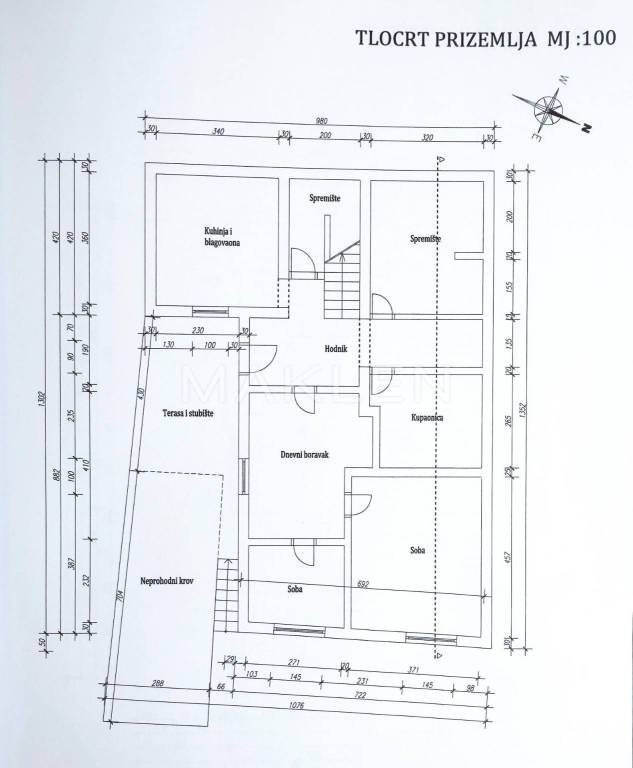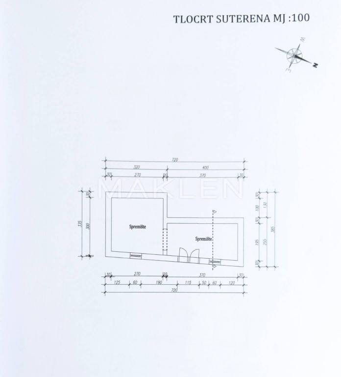 - PRIZEMLJA: dnevni boravka, kuhinja i blagovaona, manja sobe, kupaonica, hodnik, spremišta i terasa.
