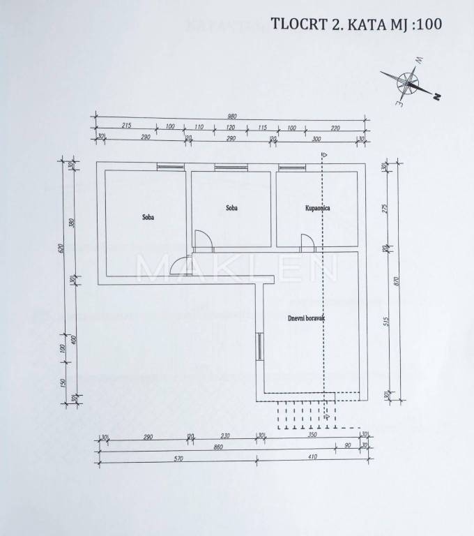 - DRUGI KATA: dnevni boravak, kupaonica te dvije spavaće sobe.