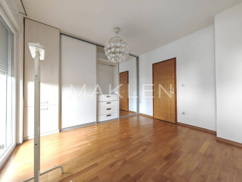 Stan se sastoji od dnevnog boravka s kuhinjom i blagovaonicom, dvije spavaće sobe, kupaonice, hodnika te balkona.