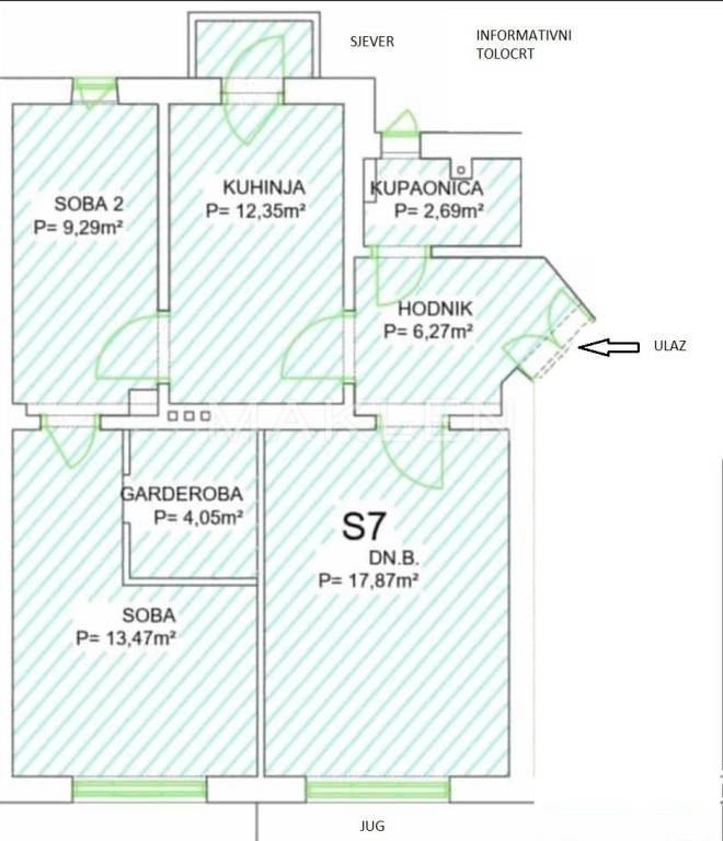 Prodaje se trosoban stan ukupne neto korisne površine 65 m2 na drugom katu zgrade bez lifta.