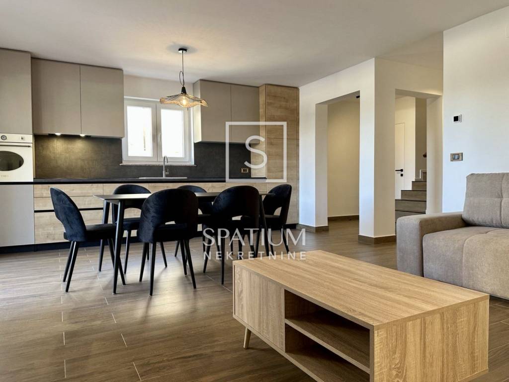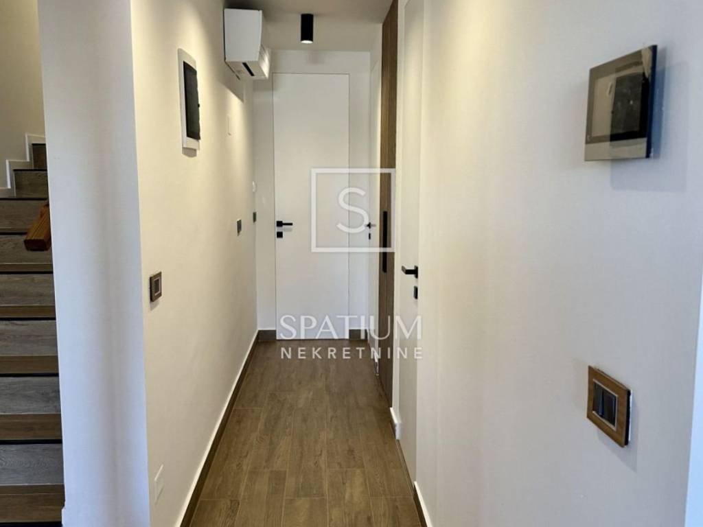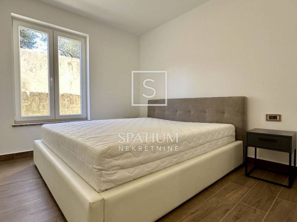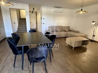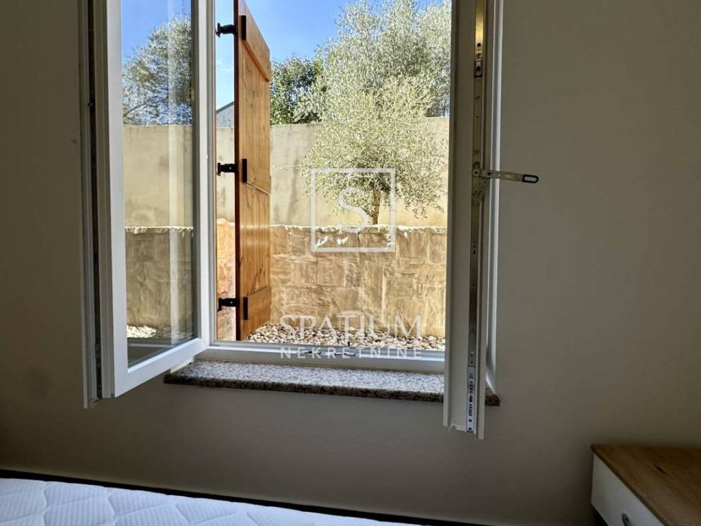 Sjeverne je orijentacije te nudi dvije prostrane spavaće sobe, moderno opremljenu kuhinju s vrhunskim aparatima te prostrani dnevni boravak koji odiše toplinom i udobnošću. Podno grijanje na struju osigurava ugodnu temperaturu tijekom zimskih mjeseci, dok sustav ventilacije i klima uređaj dodatno pridonose kvaliteti boravka. U vlasništvu stana nalazi se i jedno parkirno mjesto od 14.36 m2, a dodatna prednost je obnovljeno antikno nalazište u sklopu zgrade, koje ovom lokacijom daje poseban povijesni značaj. Idealno smješten u mirnom okruženju, omogućava uživanje u blagodatima mora i prirode, dok je istovremeno nadomak svih sadržaja koje Umag nudi od bogate kulturne baštine do vrhunske gastronomske ponude.
