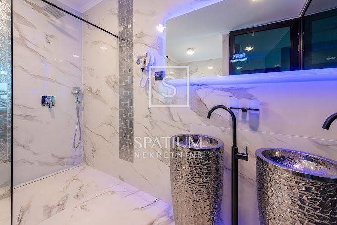 CRIKVENICA, u ponudi imamo dizajniranu vilu s prelijepim panoramskim pogledom uzduž cijele obale. Luksuzno opremljena na atraktivnoj lokaciji u mirnom dijelu grada. Sastoji se od prostranog dnevnog boravka povezanog s kuhinjom i blagovaonicom (open space) i četiri spavaće sobe od kojih svaka ima svoju pripadajuću kupaonicu. Idealna je kao turistička nekretnina i kao rezidencija za odmor. Registrirana je za turizam i u kategorizaciji ima 5*. Opremljena je svim potrebnim kućanskim aparatima te modernim namještajem. Zidove krase slike akademskog slikara koje su posebno rađene za ovu Villu. Grijanje i hlađenje objekta riješeno je podnim grijanjem i klimatizacijom za hlađenje. Villa je opremljena smart home sustavom, električnim zavjesama i video nadzorom. Iz dnevnog boravka se izlazi na u9fređeno dvorište gdje se nalazi grijani bazen s dizalicom topline i elektrolizom, sunčalište, mjesto za roštilj i oprema za roštilj. Na terasi kuće nalazi se jacuzzi. S obzirom na idealan položaj vile, ne može ga narušiti drugi građevinski objekt. Ispred kuće nalaze se dva natkrivena parking mjesta, i dodatnih nenatkrivenih mjesta za parking.