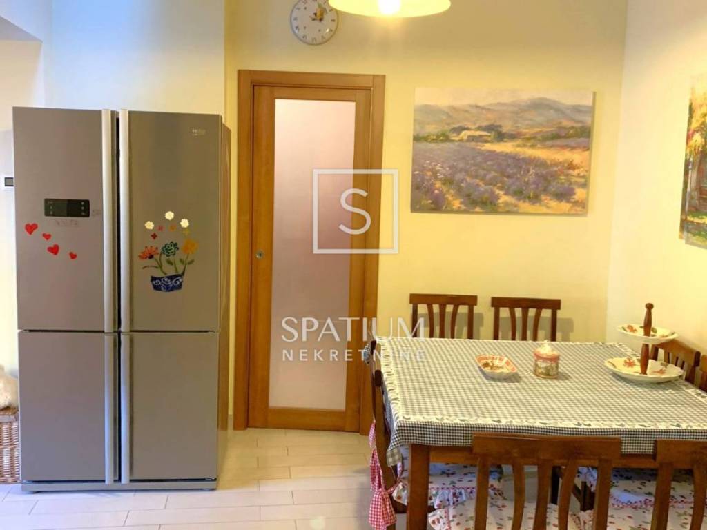 OPATIJA, u ponudi imamo stan blizu centra grada. Sastoji se od dnevnog boravka, ulaznog hodnika, dvije spavaće sobe, jedne radne sobe koja može biti i treća spavaća i kuhinje s blagovaonom u sklopu s dnevnim boravkom iz kojeg se izlazi na prostranu južno orijentiranu terasu površine 45 m2. Ova nekretnina posjeduje saunu i prostor za opuštanje koji trenutno služi kao vešeraj, dvije kupaonice i još jedan dodatan gostinjski WC. Uz stan dolazi i poveće spremište u suterenu zgrade površine 6 m2. Stanu pripadaju dva parkirna mjesta u garaži i jedno vanjsko. Iz garaže se liftom odmah dolazi pred stan, a u isti se ulazi pametnom karticom. Smješten na prestižnoj lokaciji, udaljen svega nekoliko minuta šetnje od samog centra Opatije i gradskih plaža. Odlična prilika za turističku investiciju s obzirom na lokaciju, noviju gradnju, garažu, prostranu terasu i pogled na more, ali i predivan stan za život, ljetovanja i odmor.