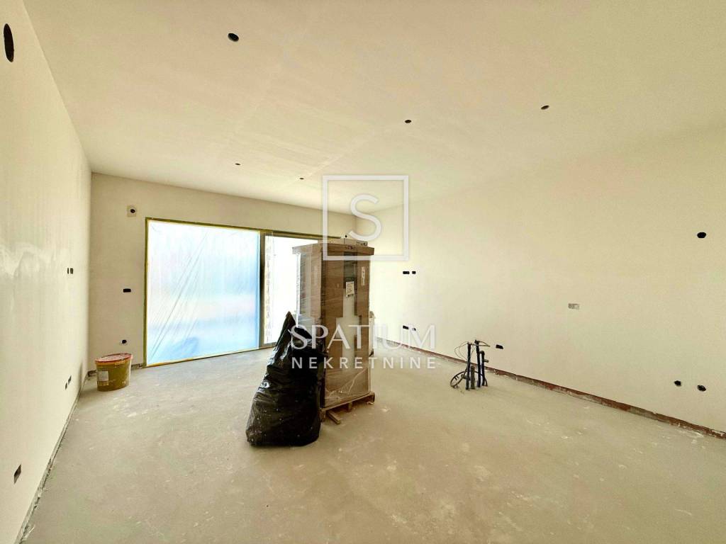 U ekskluzivnu ponudu dobili smo stan koji se sastoji od ulaznog hodnika (7,39 m2), kupaonice (4,06 m2), kuhinje, blagovaonice i dnevnog boravka (27,84 m2), dvije spavaće sobe (10,27 m2 i 10,28 m2), dvije terase (10,60 i 10,80 m2), uređene okućnice (82,04 m2), garažnog parkirnog mjesta (15,53 m2) i spremišta (3,96 m2). Ovaj stan nalazi se u prizemlju zgrade, ali pruža prekrasan panoramski pogled na more.