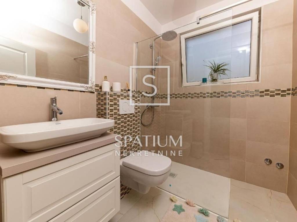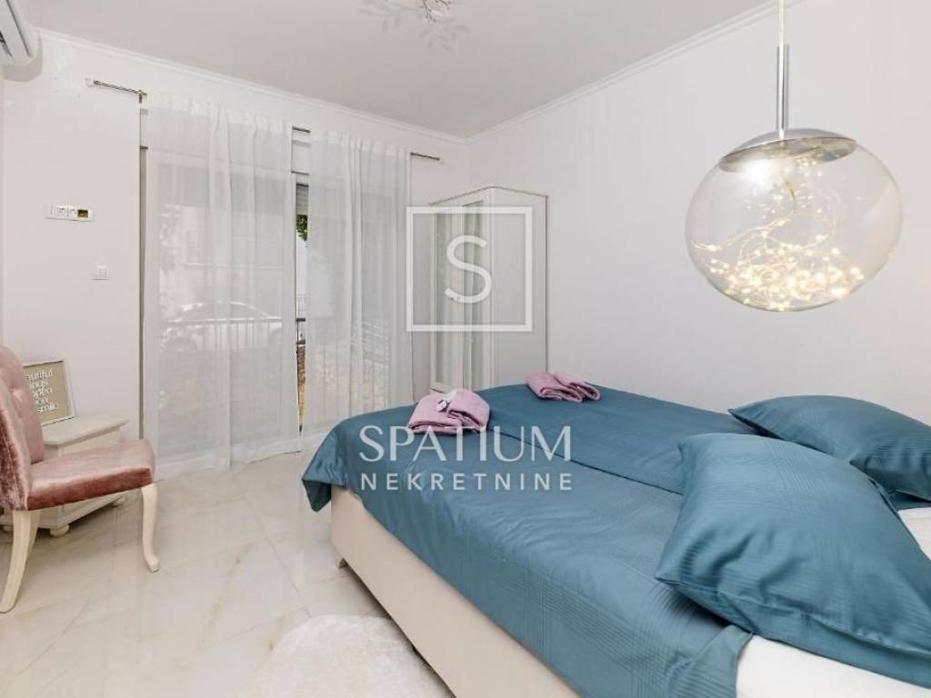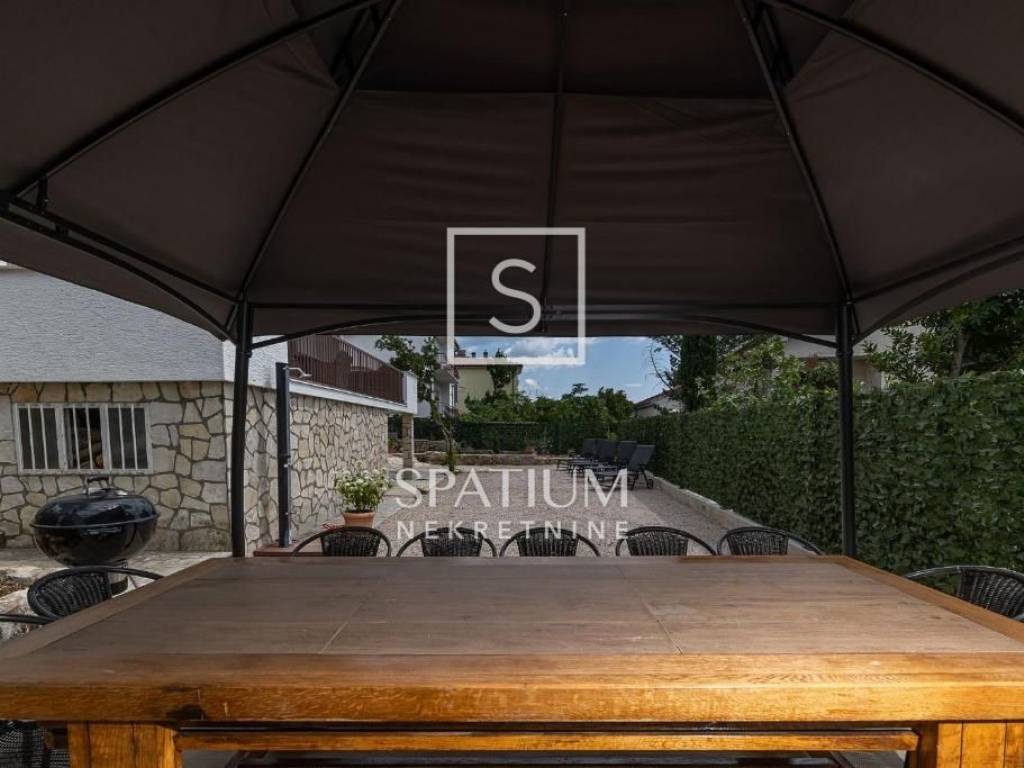 CRIKVENICA, u ponudu smo dobili samostojeću kuću s pogledom na more, stambenog prostora 180 m2 s prostranom okućnicom. Kompletno je adaptirana 2022. godine. Sastoji se od suterena u kojem je smještena garaža te prostorija predviđena za saunu i jacuzzi. U prizemlju se nalazi ulazni hodnik, open space prostor s kuhinjom, blagovaonom i prostranim dnevnim boravkom iz kojeg se izlazi na predivnu terasu površine 30 m2, spavaće sobe s vlastitim balkonom, kupaone s WC-om i zasebnog WC-a. Unutarnje stepenice vode na kat koji se sastoji od tri spavaće sobe, dvije kupaone s WC-om te balkonom koji se prostire cijelom širinom kuće s predivnim panoramskim pogledom. Unutar ograđenog i uređenog dvorišta nalazi se vrt i natkrivena nadstrešnica s velikim stolom i grillom. Kuća ima osigurana tri parkirna mjesta. Grijanje i hlađenje uređeno je putem pet jedinica klima uređaja, a zbog solarnog sustava nema troška električne energije. Prodaje se kompletno namještena s uhodanim poslom turističkog najma te je kao takva odlična investicija.